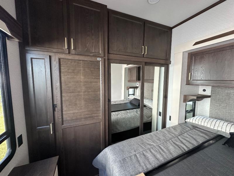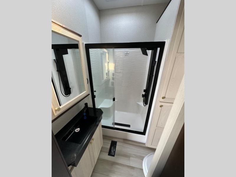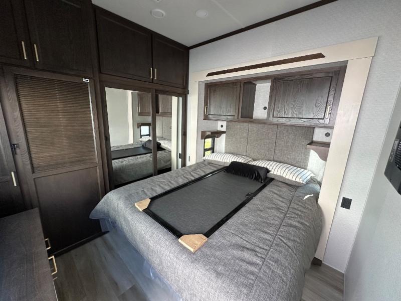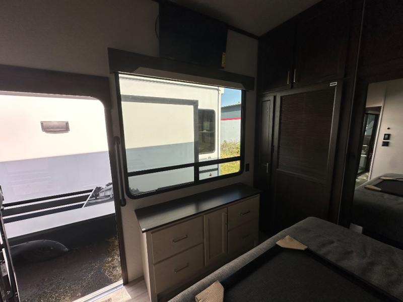 With any Cedar Creek Cottage destination trailer by Forest River, you can enjoy extended stays with residential features at the location of your choice! Each model is built with 3M bonded sidewalls that grow stronger with age and are resistant to UV, heat, oil, moisture, and more. There is also an AlphaPly TPO roof membrane, detachable entry steps, and new waterproof and bug proof Vixenite slide room floor panels for added durability. Head inside where you'll find residential dovetail, self-closing drawers, flush floor slides in the kitchen and living area, a residential style headboard and luxurious bedding decor, and extra storage for linens in the bedroom and bath. Each model is also pre-wired for satellite to the roof, and you can stay connected with the new Cradle Point WiFi/5G antenna and Day 1 connectivity.