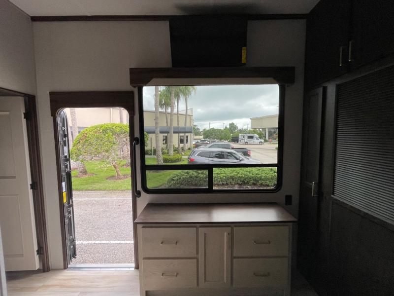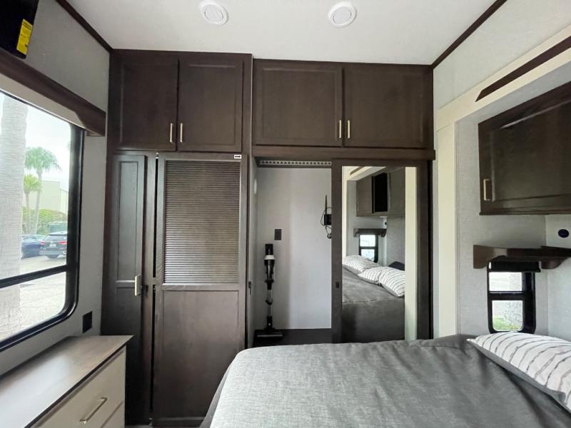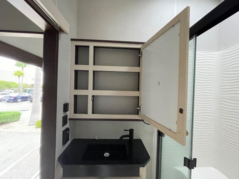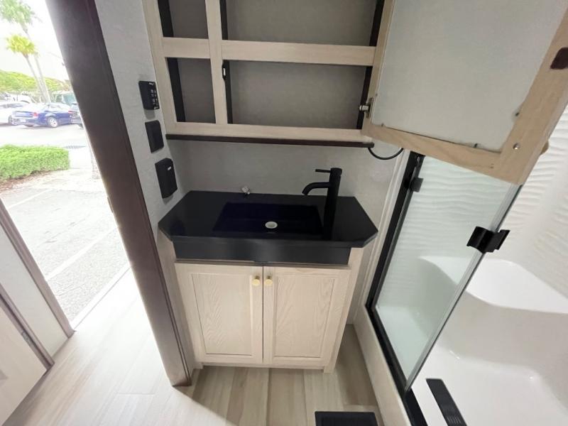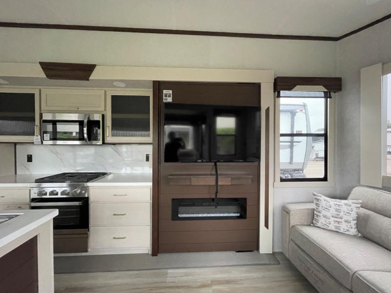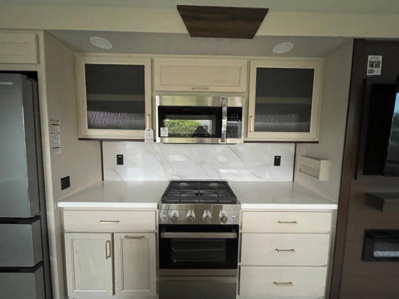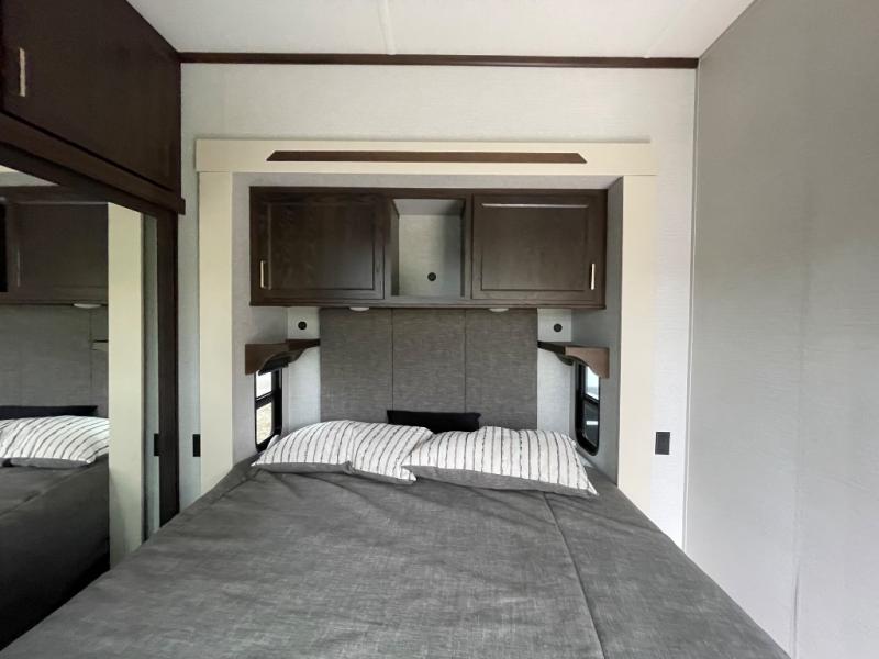 With any Cedar Creek Cottage destination trailer by Forest River, you can enjoy extended stays with residential features at the location of your choice! Each model is built with 3M bonded sidewalls that grow stronger with age and are resistant to UV, heat, oil, moisture, and more. There is also an AlphaPly TPO roof membrane, detachable entry steps, and new waterproof and bug proof Vixenite slide room floor panels for added durability. Head inside where you'll find residential dovetail, self-closing drawers, flush floor slides in the kitchen and living area, a residential style headboard and luxurious bedding decor, and extra storage for linens in the bedroom and bath. Each model is also pre-wired for satellite to the roof, and you can stay connected with the new Cradle Point WiFi/5G antenna and Day 1 connectivity.