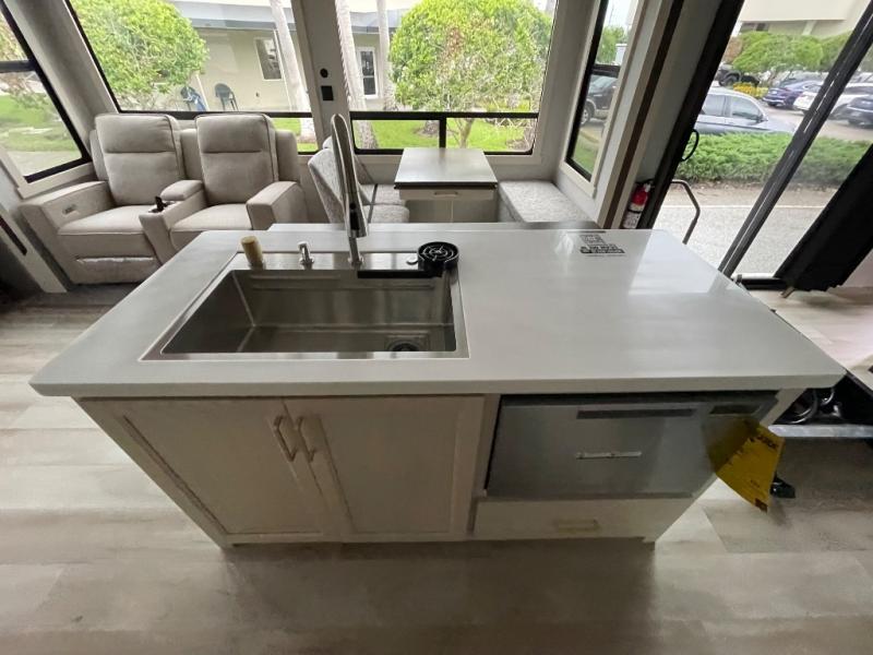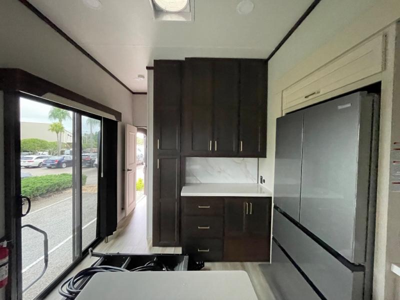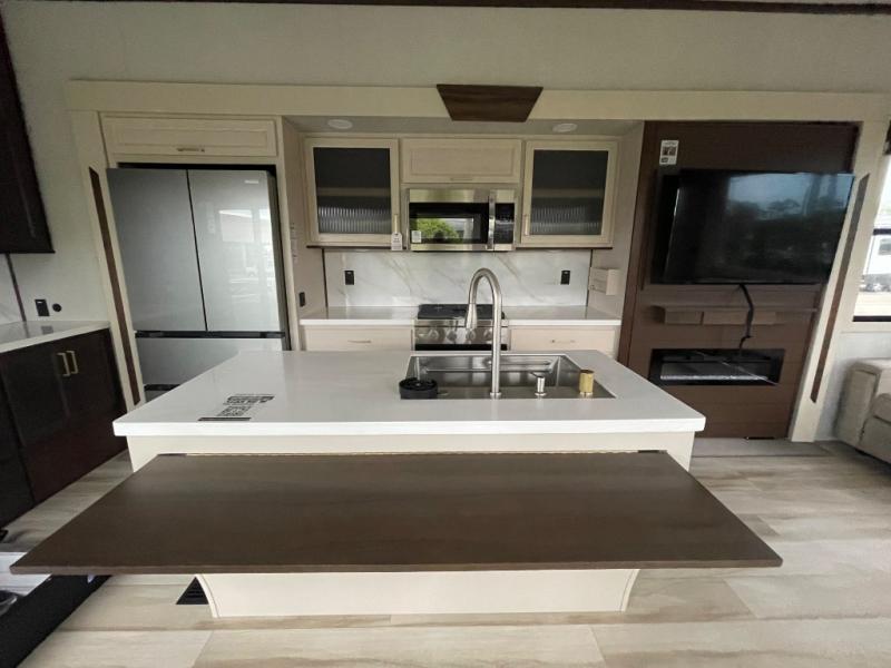 Spend some time getting to know your family a little bit better in this Cedar Creek Cottage destination trailer! You will have plenty of space to do all sorts of indoor activities with the opposing slides and king bed slide for added space, and the free-standing table with chairs has an extension that you can use if you are working on a bigger puzzle or have guests over for dinner. The kitchen features everything you need to create meals for your whole family just like at home. You will love the 18 cu. ft. 12 volt refrigerator so you can stock-up at the grocery store. The Murphy pantry also features all the space needed to store many treats, and you can add an optional dishwasher to help you clean up much faster.