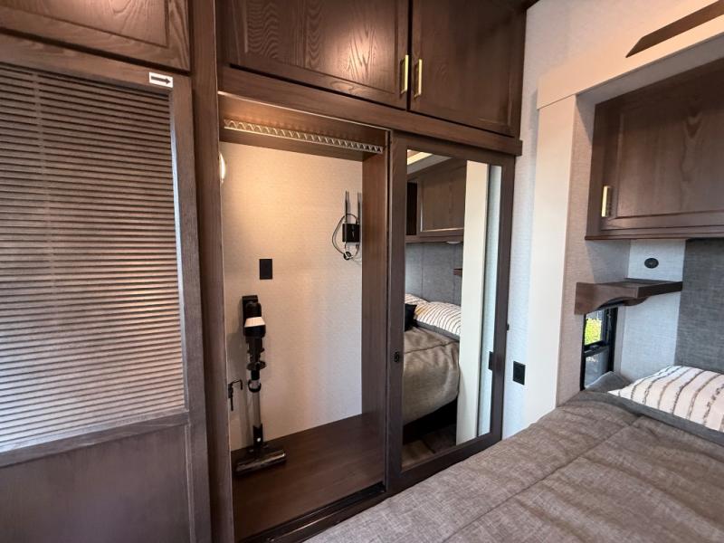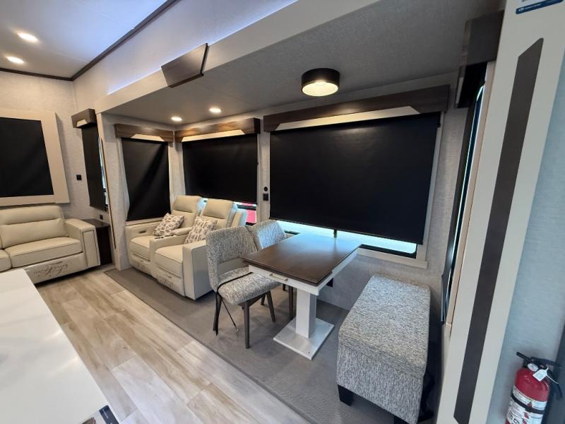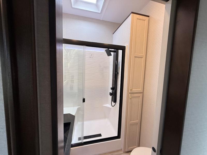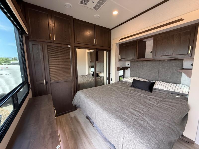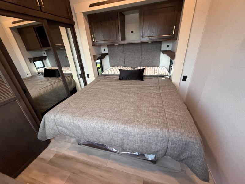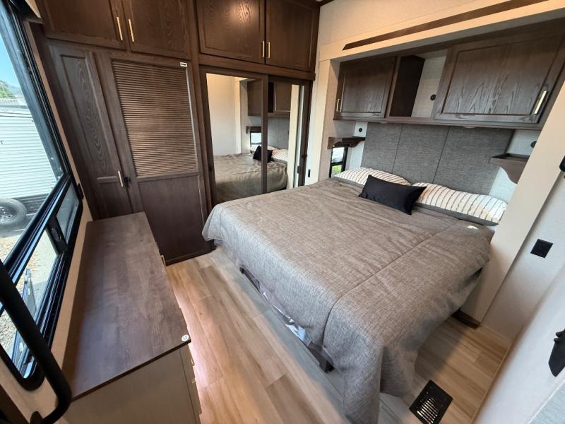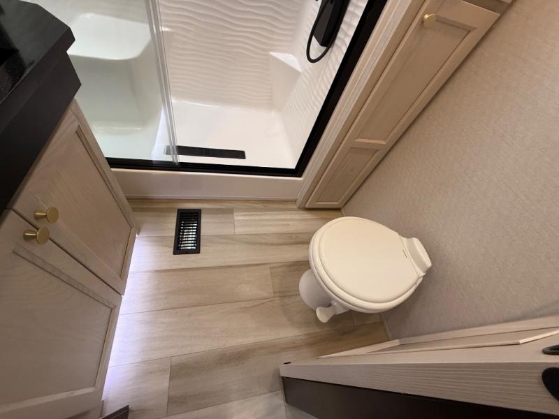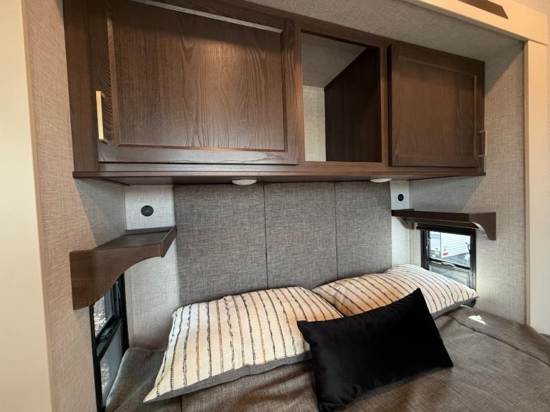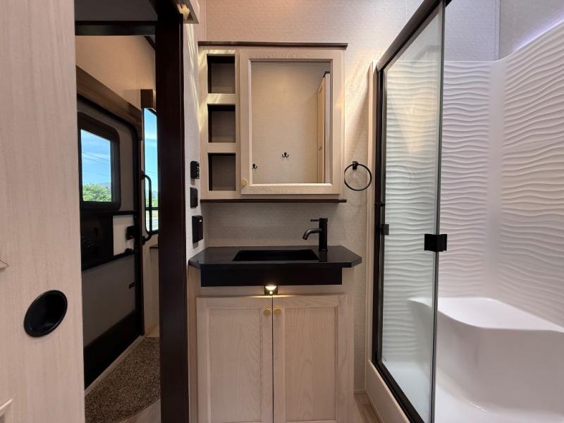 With any Cedar Creek Cottage destination trailer by Forest River, you can enjoy extended stays with residential features at the location of your choice! Each model is built with 3M bonded sidewalls that grow stronger with age and are resistant to UV, heat, oil, moisture, and more. There is also an AlphaPly TPO roof membrane, detachable entry steps, and new waterproof and bug proof Vixenite slide room floor panels for added durability. Head inside where you'll find residential dovetail, self-closing drawers, flush floor slides in the kitchen and living area, a residential style headboard and luxurious bedding decor, and extra storage for linens in the bedroom and bath. Each model is also pre-wired for satellite to the roof, and you can stay connected with the new Cradle Point WiFi/5G antenna and Day 1 connectivity.