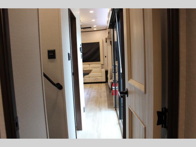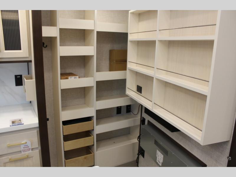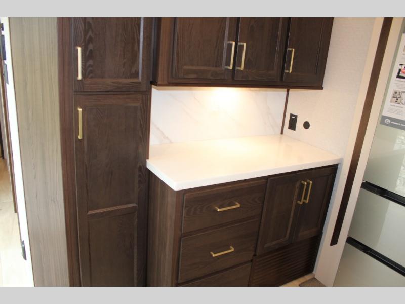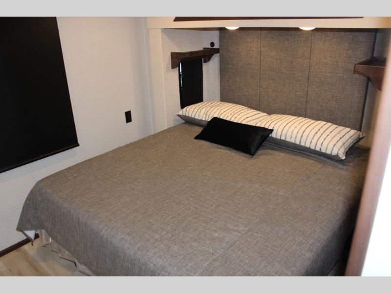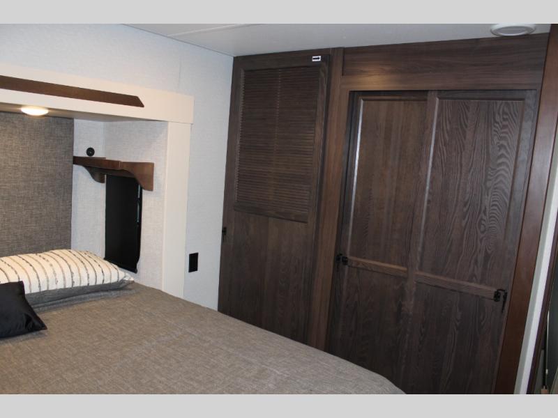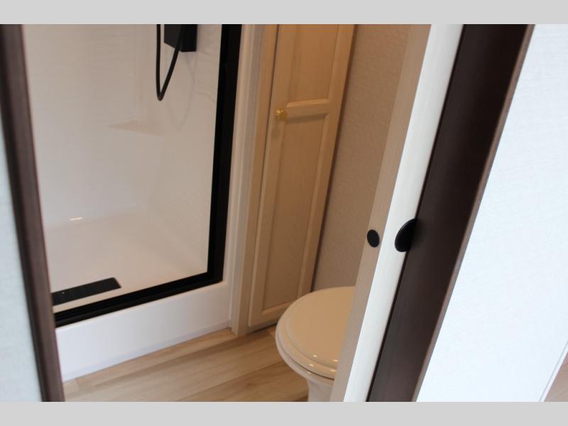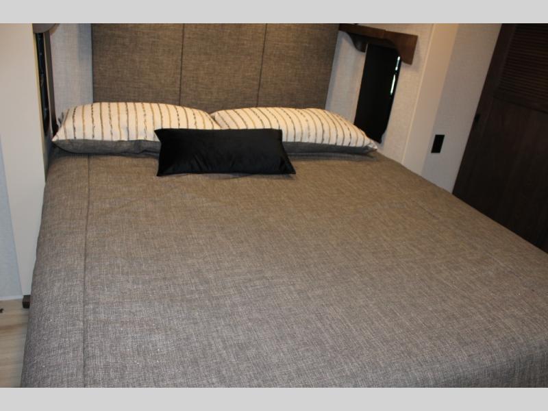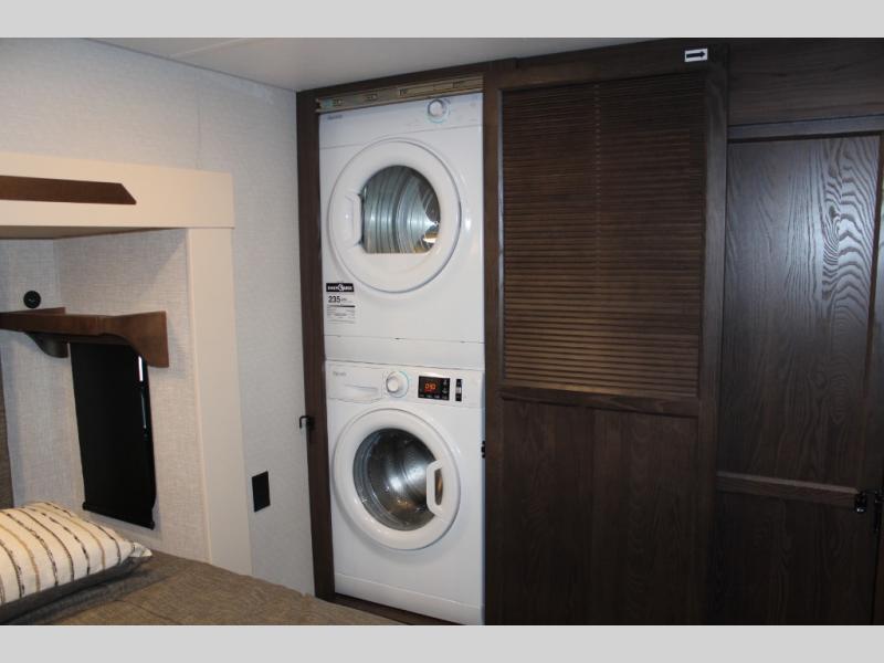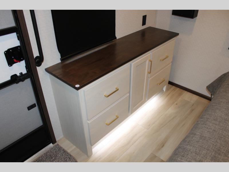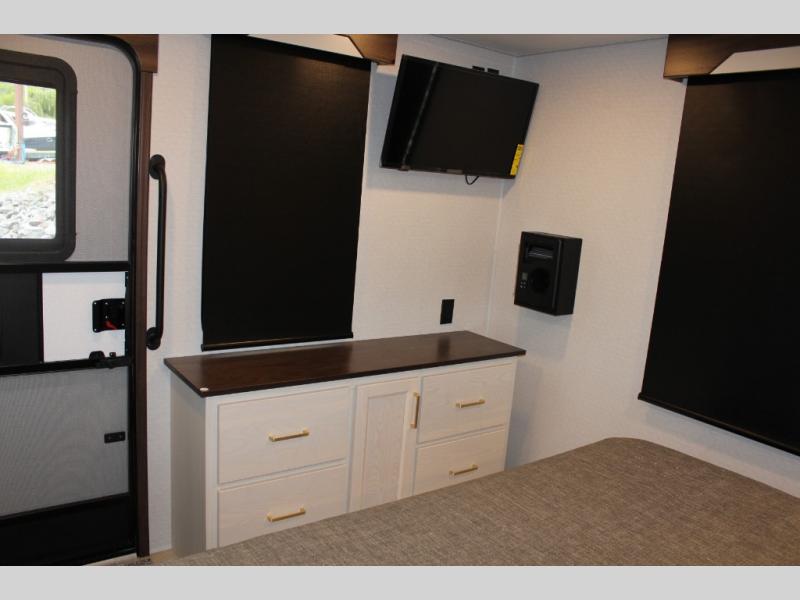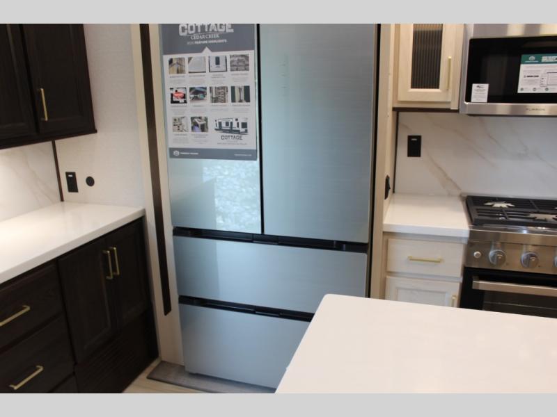 With any Cedar Creek Cottage destination trailer by Forest River, you can enjoy extended stays with residential features at the location of your choice! Each model is built with 3M bonded sidewalls that grow stronger with age and are resistant to UV, heat, oil, moisture, and more. There is also an AlphaPly TPO roof membrane, detachable entry steps, and new waterproof and bug proof Vixenite slide room floor panels for added durability. Head inside where you'll find residential dovetail, self-closing drawers, flush floor slides in the kitchen and living area, a residential style headboard and luxurious bedding decor, and extra storage for linens in the bedroom and bath. Each model is also pre-wired for satellite to the roof, and you can stay connected with the new Cradle Point WiFi/5G antenna and Day 1 connectivity.