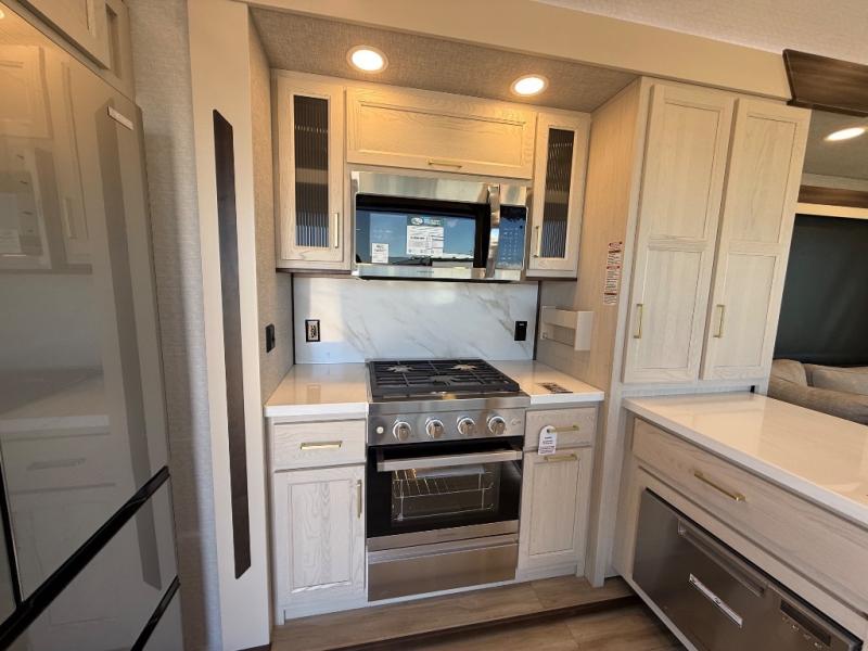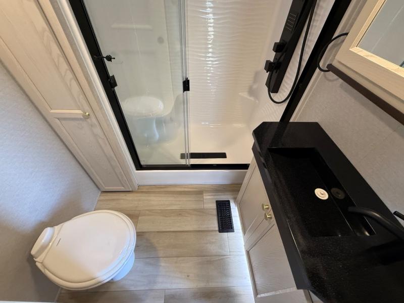 With any Cedar Creek Cottage destination trailer by Forest River, you can enjoy extended stays with residential features at the location of your choice! Each model is built with 3M bonded sidewalls that grow stronger with age and are resistant to UV, heat, oil, moisture, and more. There is also an AlphaPly TPO roof membrane, detachable entry steps, and new waterproof and bug proof Vixenite slide room floor panels for added durability. Head inside where you'll find residential dovetail, self-closing drawers, flush floor slides in the kitchen and living area, a residential style headboard and luxurious bedding decor, and extra storage for linens in the bedroom and bath. Each model is also pre-wired for satellite to the roof, and you can stay connected with the new Cradle Point WiFi/5G antenna and Day 1 connectivity.
