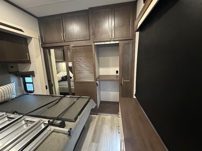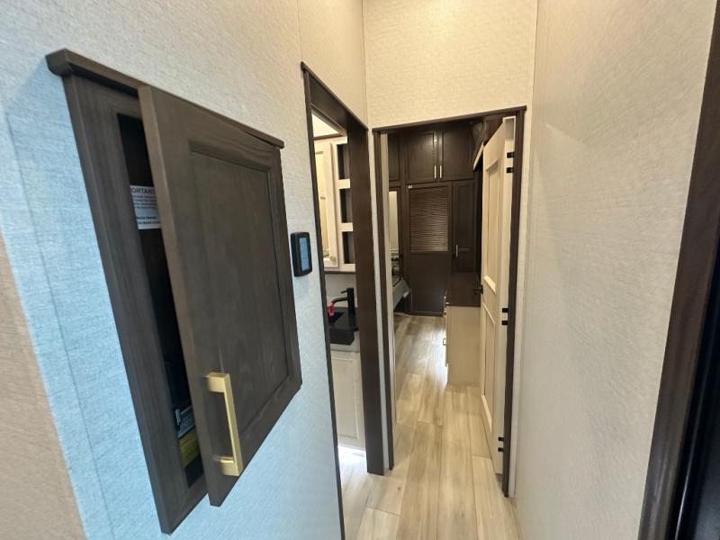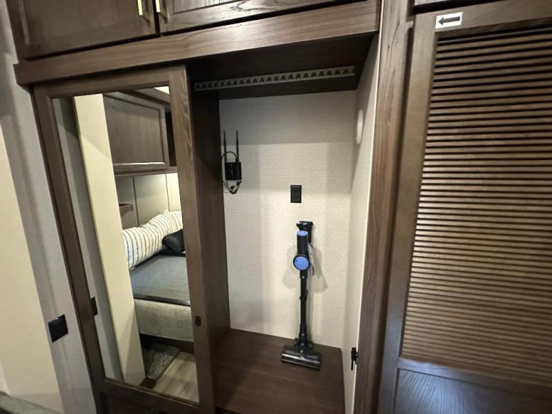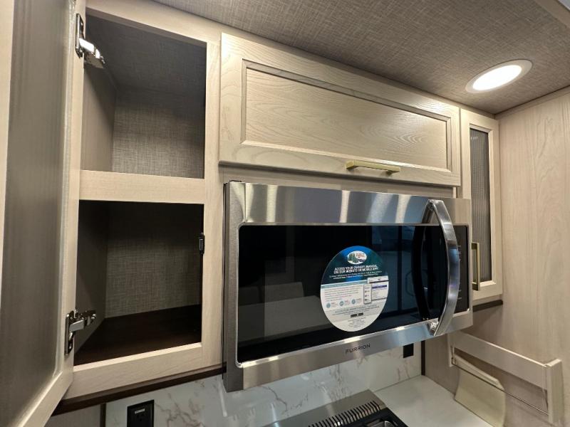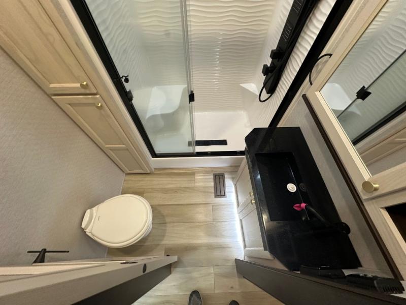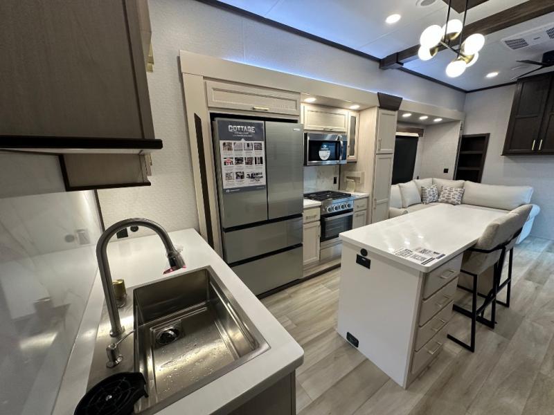 With any Cedar Creek Cottage destination trailer by Forest River, you can enjoy extended stays with residential features at the location of your choice! Each model is built with 3M bonded sidewalls that grow stronger with age and are resistant to UV, heat, oil, moisture, and more. There is also an AlphaPly TPO roof membrane, detachable entry steps, and new waterproof and bug proof Vixenite slide room floor panels for added durability. Head inside where you'll find residential dovetail, self-closing drawers, flush floor slides in the kitchen and living area, a residential style headboard and luxurious bedding decor, and extra storage for linens in the bedroom and bath. Each model is also pre-wired for satellite to the roof, and you can stay connected with the new Cradle Point WiFi/5G antenna and Day 1 connectivity.