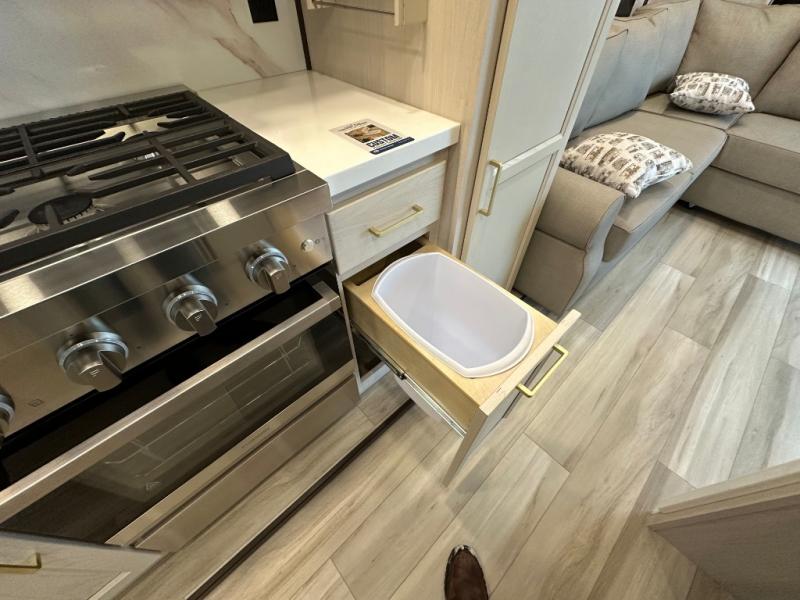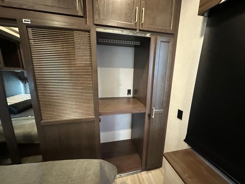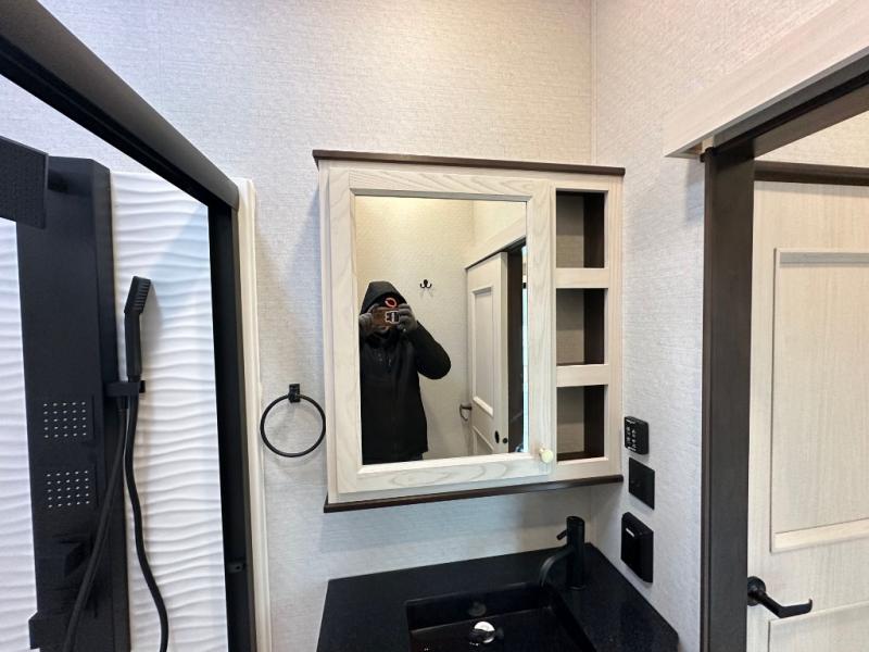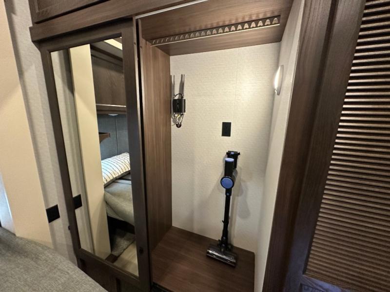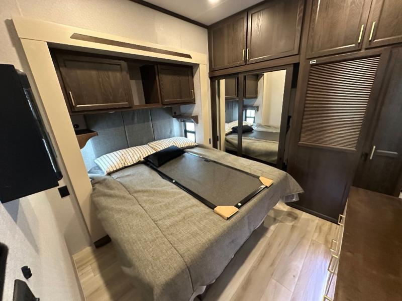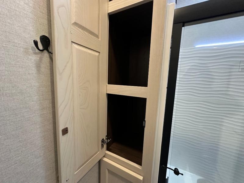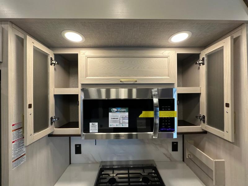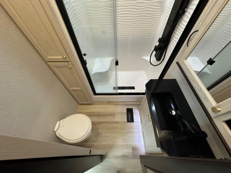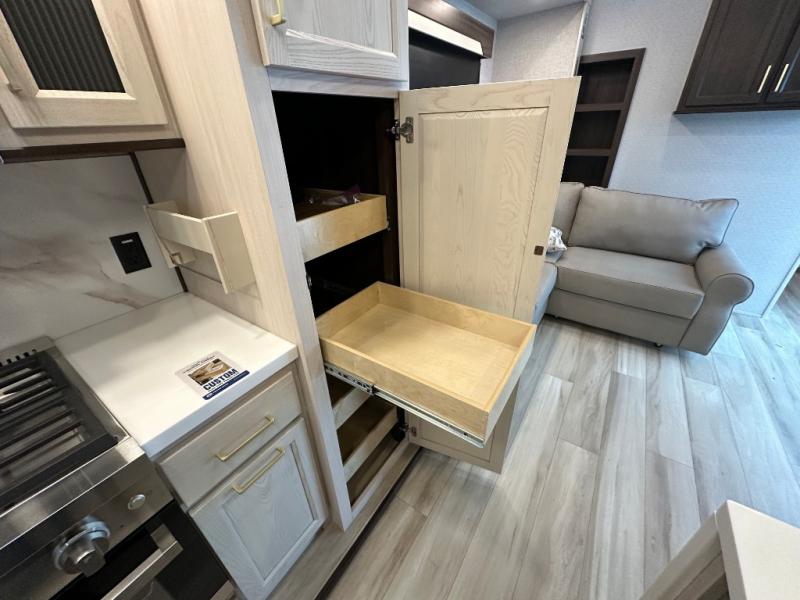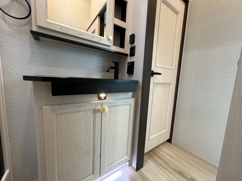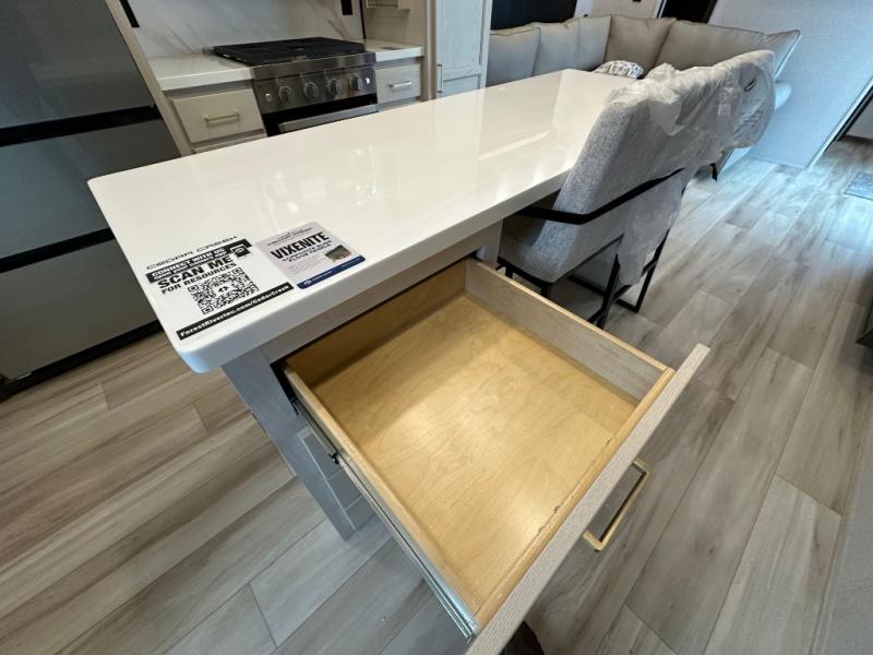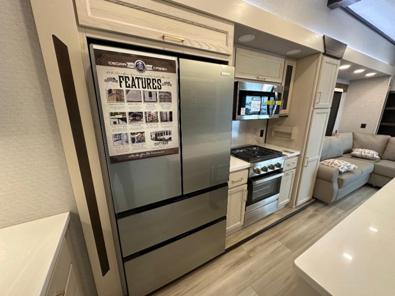 With any Cedar Creek Cottage destination trailer by Forest River, you can enjoy extended stays with residential features at the location of your choice! Each model is built with 3M bonded sidewalls that grow stronger with age and are resistant to UV, heat, oil, moisture, and more. There is also an AlphaPly TPO roof membrane, detachable entry steps, and new waterproof and bug proof Vixenite slide room floor panels for added durability. Head inside where you'll find residential dovetail, self-closing drawers, flush floor slides in the kitchen and living area, a residential style headboard and luxurious bedding decor, and extra storage for linens in the bedroom and bath. Each model is also pre-wired for satellite to the roof, and you can stay connected with the new Cradle Point WiFi/5G antenna and Day 1 connectivity.