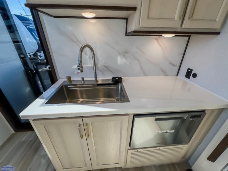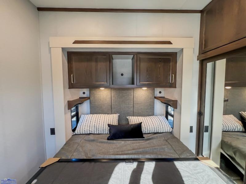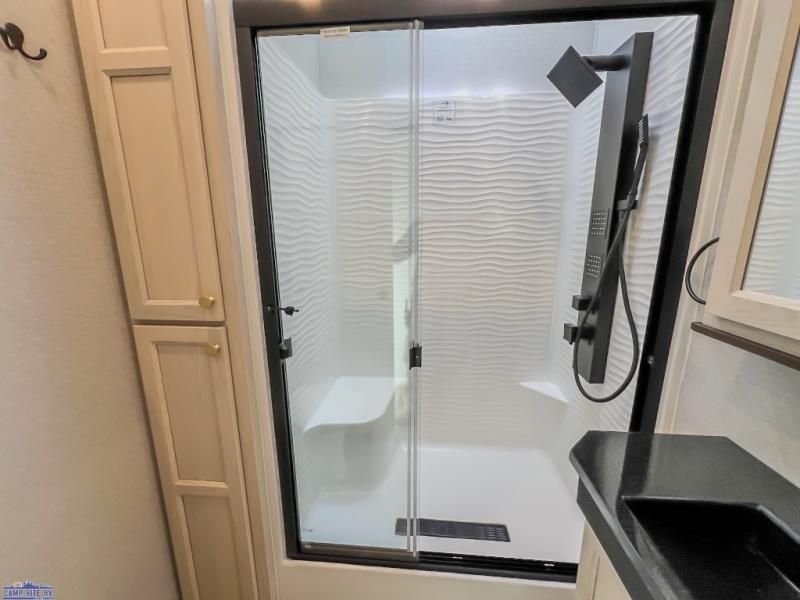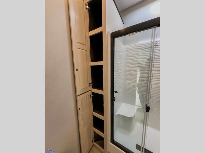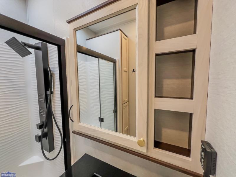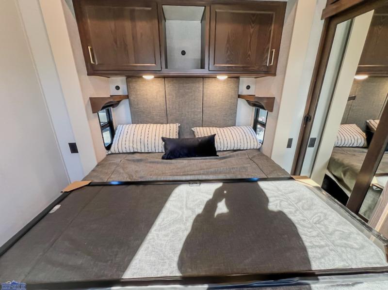 With any Cedar Creek Cottage destination trailer by Forest River, you can enjoy extended stays with residential features at the location of your choice! Each model is built with 3M bonded sidewalls that grow stronger with age and are resistant to UV, heat, oil, moisture, and more. There is also an AlphaPly TPO roof membrane, detachable entry steps, and new waterproof and bug proof Vixenite slide room floor panels for added durability. Head inside where you'll find residential dovetail, self-closing drawers, flush floor slides in the kitchen and living area, a residential style headboard and luxurious bedding decor, and extra storage for linens in the bedroom and bath. Each model is also pre-wired for satellite to the roof, and you can stay connected with the new Cradle Point WiFi/5G antenna and Day 1 connectivity.