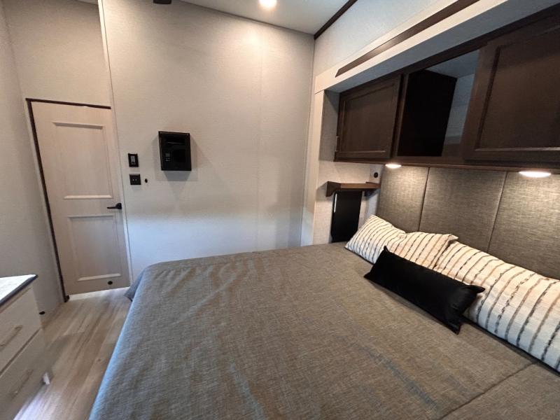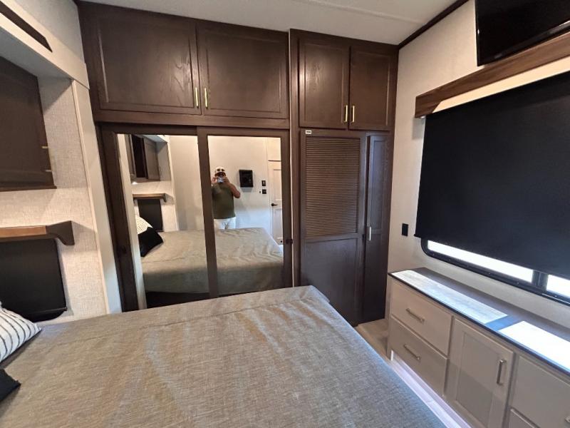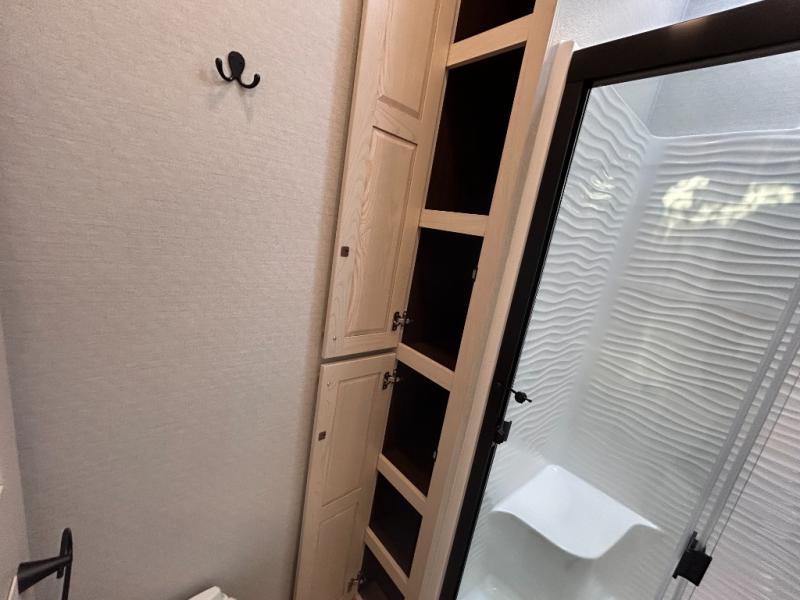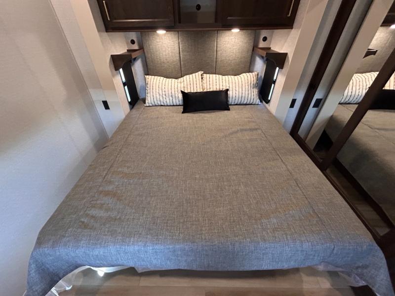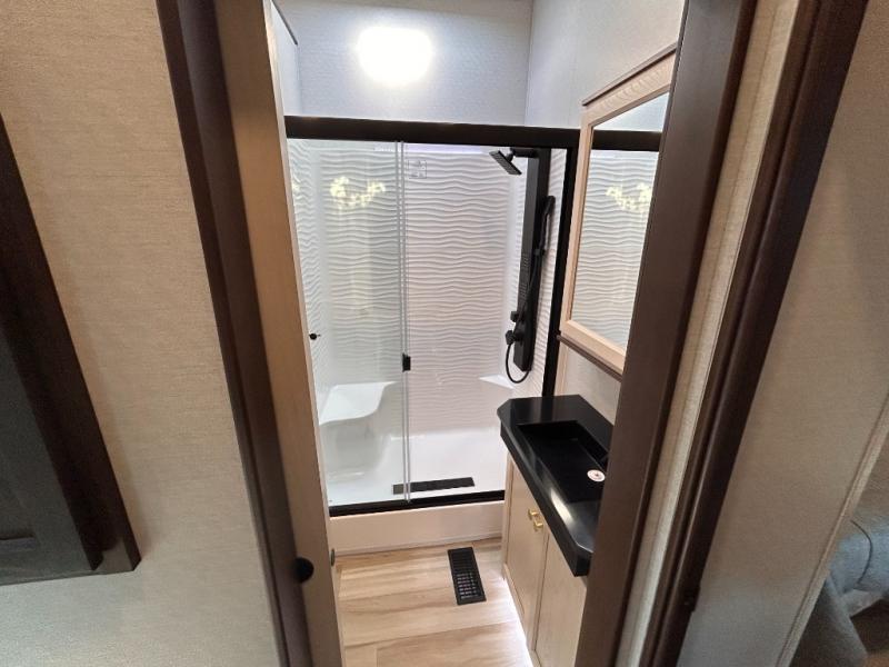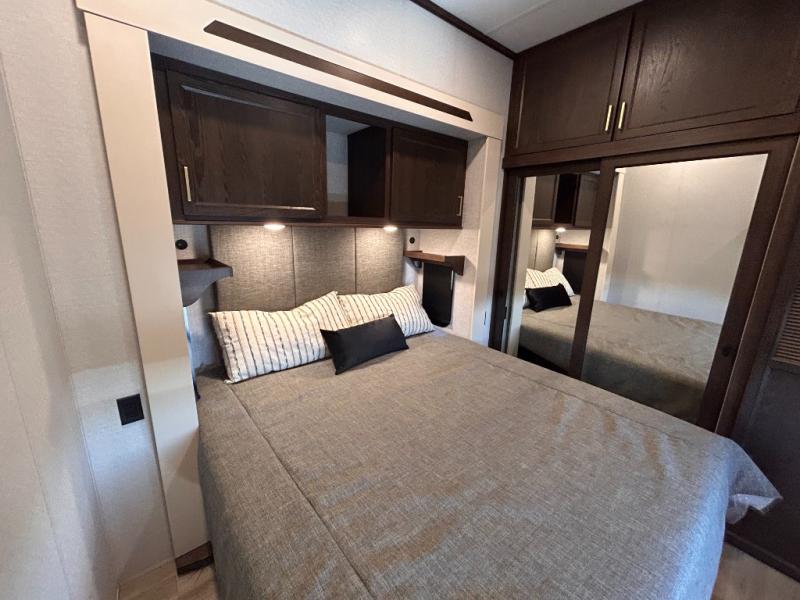 With any Cedar Creek Cottage destination trailer by Forest River, you can enjoy extended stays with residential features at the location of your choice! Each model is built with 3M bonded sidewalls that grow stronger with age and are resistant to UV, heat, oil, moisture, and more. There is also an AlphaPly TPO roof membrane, detachable entry steps, and new waterproof and bug proof Vixenite slide room floor panels for added durability. Head inside where you'll find residential dovetail, self-closing drawers, flush floor slides in the kitchen and living area, a residential style headboard and luxurious bedding decor, and extra storage for linens in the bedroom and bath. Each model is also pre-wired for satellite to the roof, and you can stay connected with the new Cradle Point WiFi/5G antenna and Day 1 connectivity.