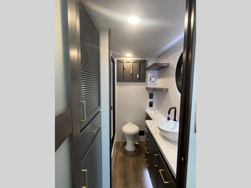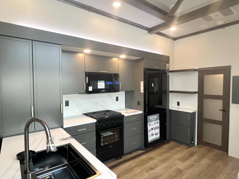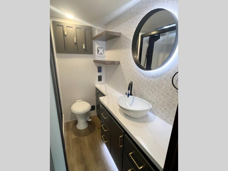 With any Cedar Creek Cottage destination trailer by Forest River, you can enjoy extended stays with residential features at the location of your choice! Each model is built with 3M bonded sidewalls that grow stronger with age and are resistant to UV, heat, oil, moisture, and more. There is also an AlphaPly TPO roof membrane, detachable entry steps, and new waterproof and bug proof Vixenite slide room floor panels for added durability. Head inside where you'll find residential dovetail, self-closing drawers, flush floor slides in the kitchen and living area, a residential style headboard and luxurious bedding decor, and extra storage for linens in the bedroom and bath. Each model is also pre-wired for satellite to the roof, and you can stay connected with the new Cradle Point WiFi/5G antenna and Day 1 connectivity.