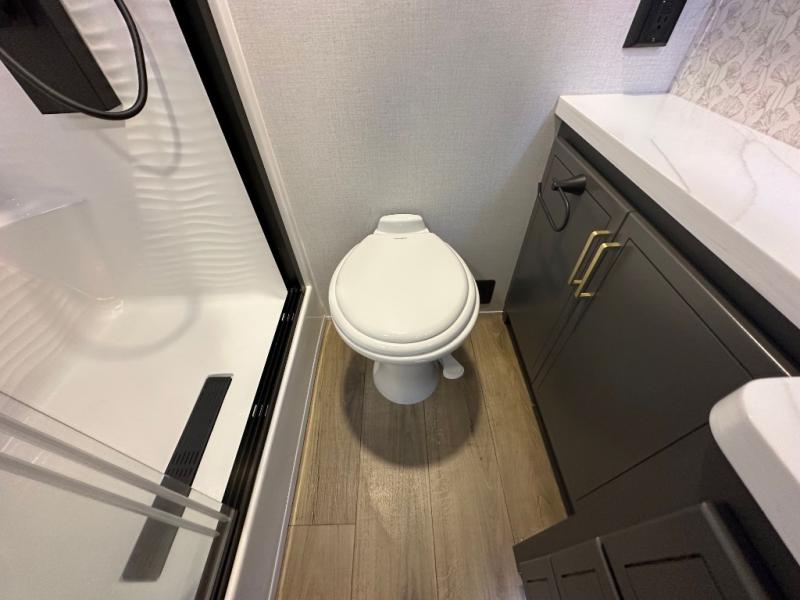 With any Cedar Creek Cottage destination trailer by Forest River, you can enjoy extended stays with residential features at the location of your choice! Each model is built with 3M bonded sidewalls that grow stronger with age and are resistant to UV, heat, oil, moisture, and more. There is also an AlphaPly TPO roof membrane, detachable entry steps, and new waterproof and bug proof Vixenite slide room floor panels for added durability. Head inside where you'll find residential dovetail, self-closing drawers, flush floor slides in the kitchen and living area, a residential style headboard and luxurious bedding decor, and extra storage for linens in the bedroom and bath. Each model is also pre-wired for satellite to the roof, and you can stay connected with the new Cradle Point WiFi/5G antenna and Day 1 connectivity.