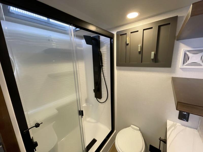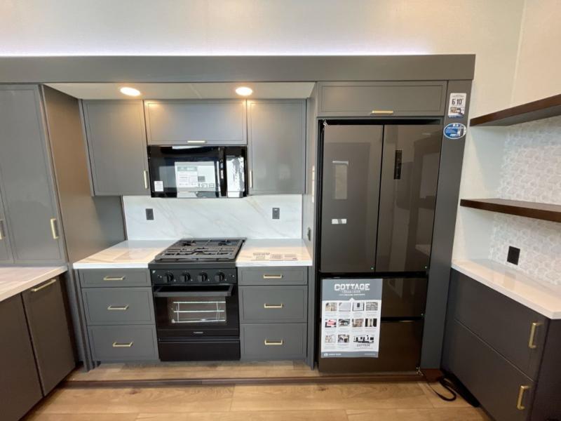 With any Cedar Creek Cottage destination trailer by Forest River, you can enjoy extended stays with residential features at the location of your choice! Each model is built with 3M bonded sidewalls that grow stronger with age and are resistant to UV, heat, oil, moisture, and more. There is also an AlphaPly TPO roof membrane, detachable entry steps, and new waterproof and bug proof Vixenite slide room floor panels for added durability. Head inside where you'll find residential dovetail, self-closing drawers, flush floor slides in the kitchen and living area, a residential style headboard and luxurious bedding decor, and extra storage for linens in the bedroom and bath. Each model is also pre-wired for satellite to the roof, and you can stay connected with the new Cradle Point WiFi/5G antenna and Day 1 connectivity.