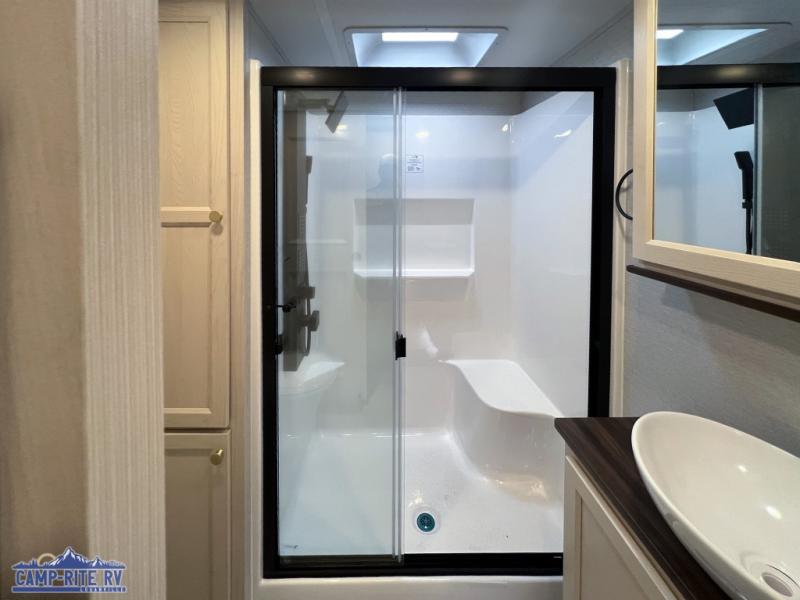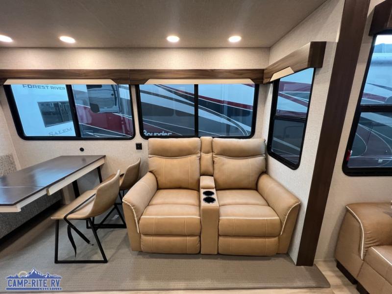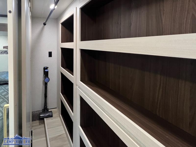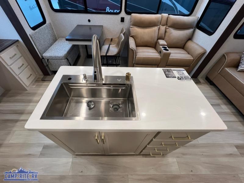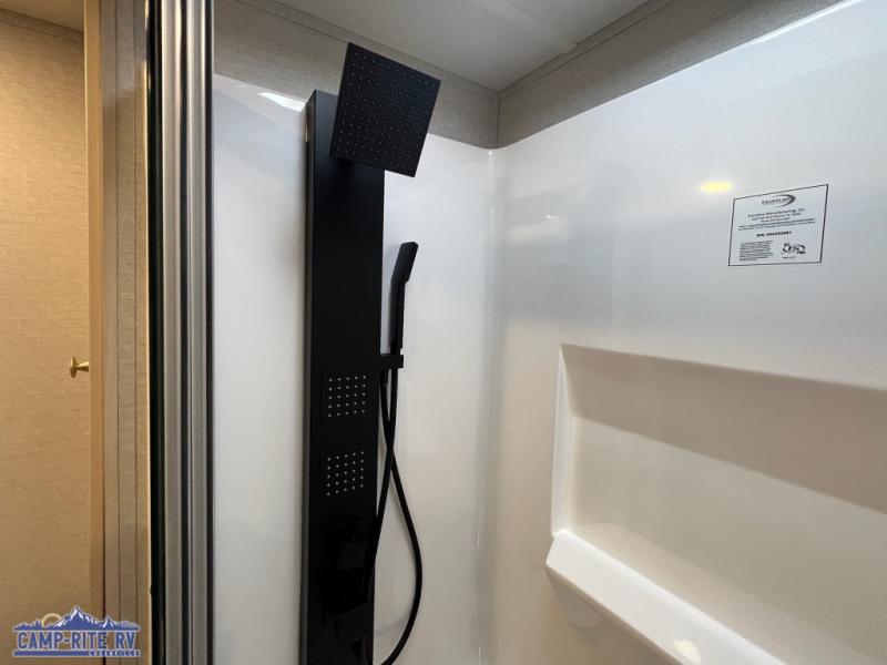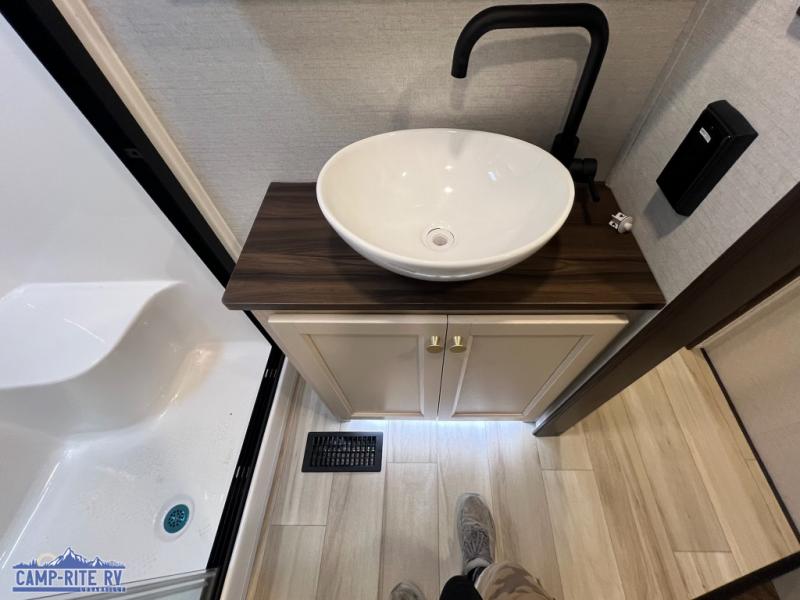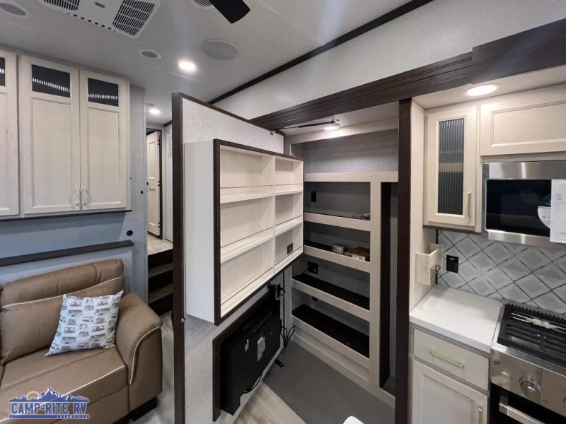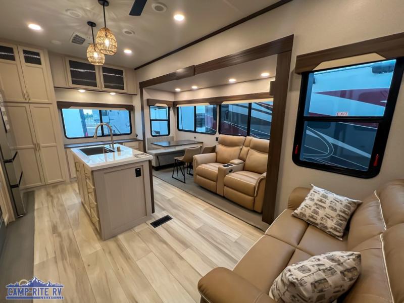 With any Cedar Creek Experience fifth wheel by Forest River, you will bet met with luxury features both inside and out! The True Gelcoat exterior is the best of the best in exteriors and the 3M bonded sidewalls will hold up over years of use. There is also a new 101'' wide-body frame, a Road Warrior suspension, plus a TST tire pressure monitoring system to make towing that much easier. You will find a hidden front storage compartment, along with a 4' x 6' ABS, ribbed, removable underbelly panels, and 6-point hydraulic leveling system, plus many more exterior conveniences. The interior will have you feeling like you haven't left home with vinyl floor coverings, power theater seating with USB ports, a cozy fireplace, vinyl floor covering and the list of comforts goes on! Each model is also pre-wired for satellite to the roof, and you're sure to never go bored with a Smart TV in the bedroom!