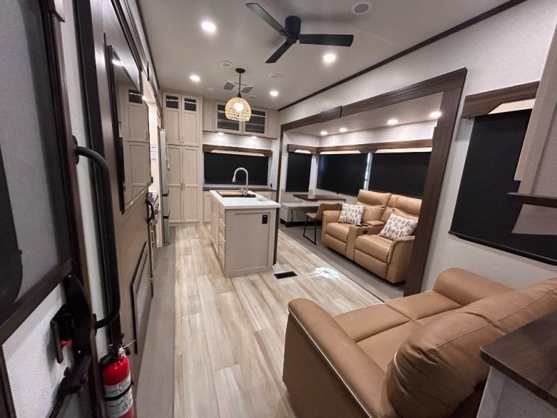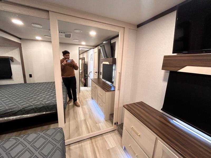REAR DESK / POWER THEATER SEATING / KIND BED / AUTO LEVELING / 3 SLIDE OUT / 200 W SOLAR PANEL