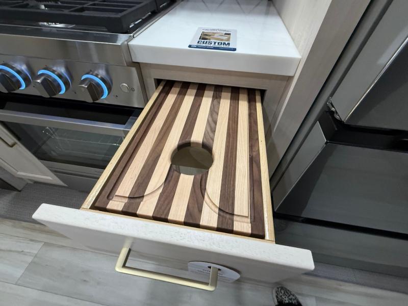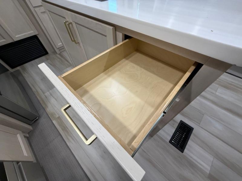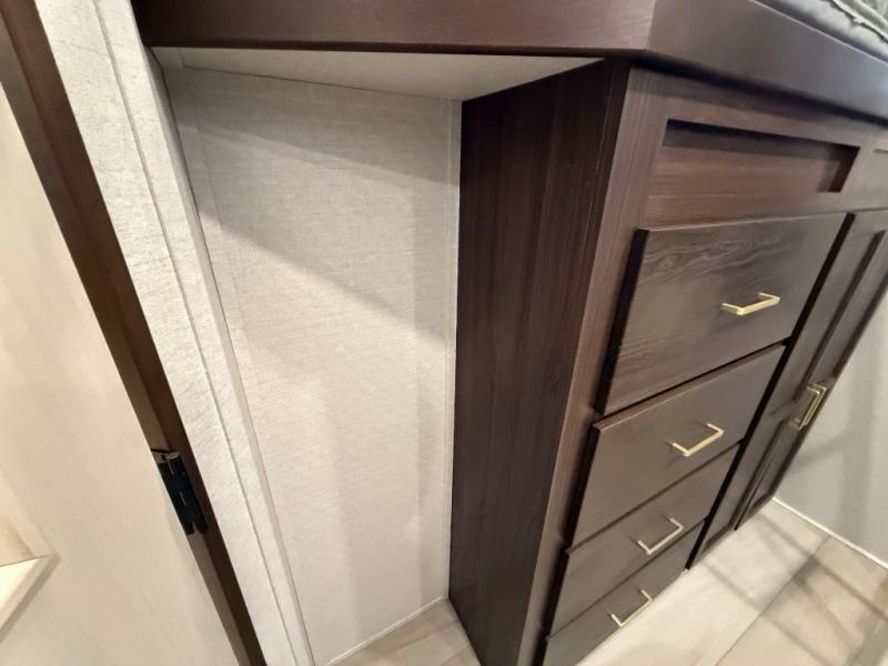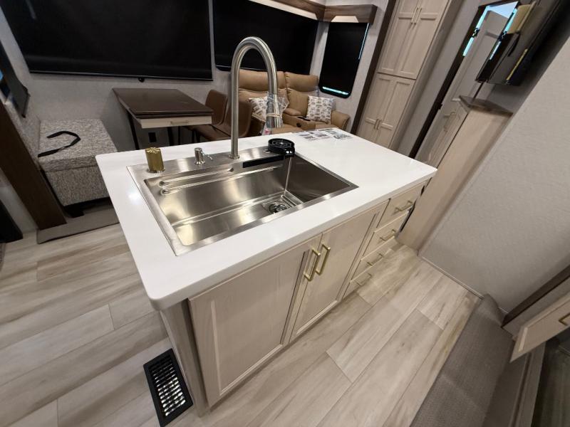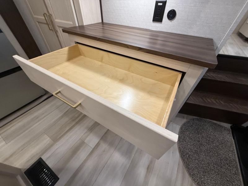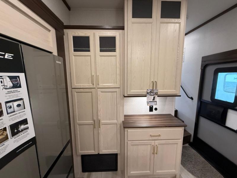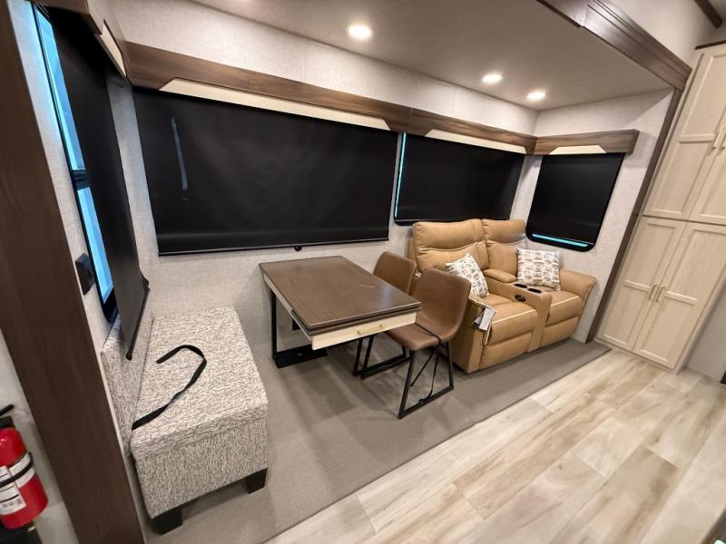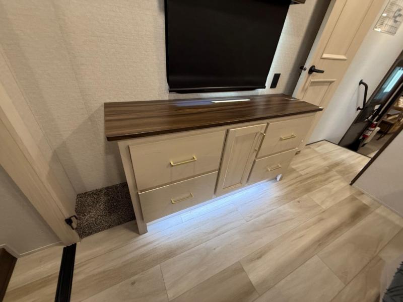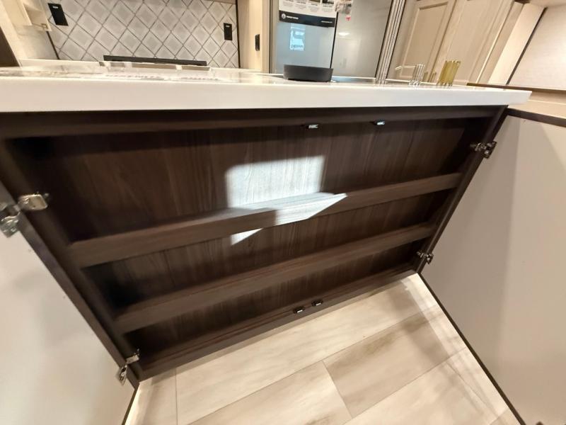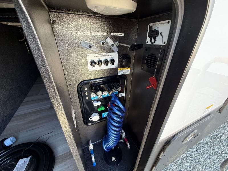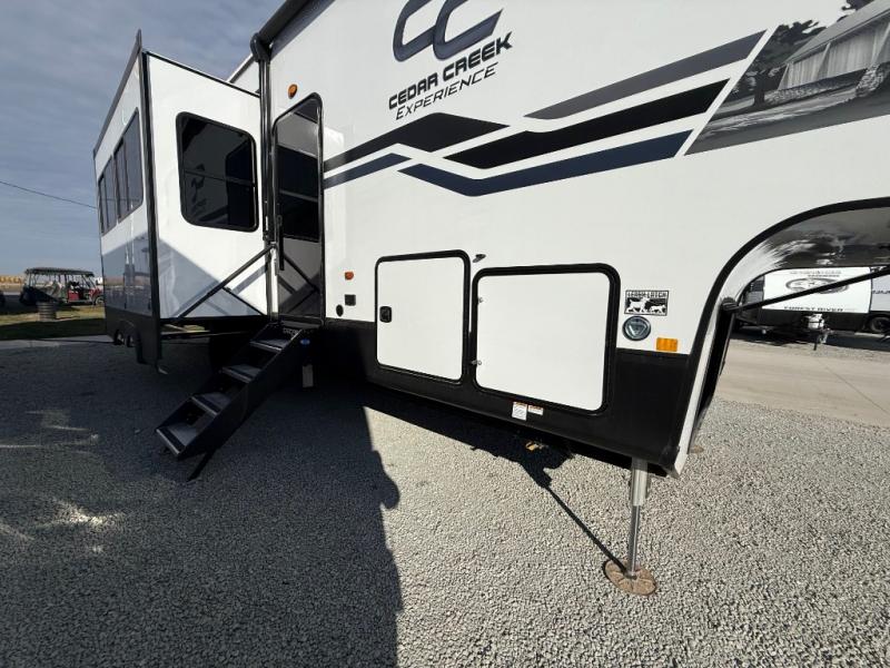 With any Cedar Creek Experience fifth wheel by Forest River, you will bet met with luxury features both inside and out! The True Gelcoat exterior is the best of the best in exteriors and the 3M bonded sidewalls will hold up over years of use. There is also a new 101'' wide-body frame, a Road Warrior suspension, plus a TST tire pressure monitoring system to make towing that much easier. You will find a hidden front storage compartment, along with a 4' x 6' ABS, ribbed, removable underbelly panels, and 6-point hydraulic leveling system, plus many more exterior conveniences. The interior will have you feeling like you haven't left home with vinyl floor coverings, power theater seating with USB ports, a cozy fireplace, vinyl floor covering and the list of comforts goes on! Each model is also pre-wired for satellite to the roof, and you're sure to never go bored with a Smart TV in the bedroom!