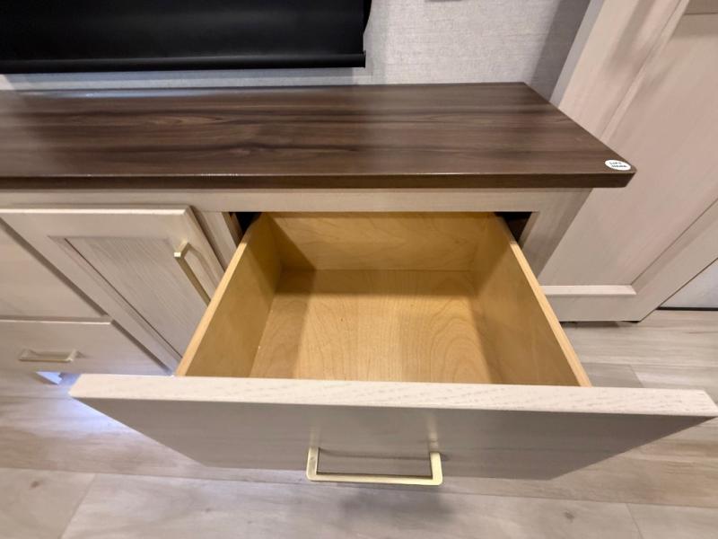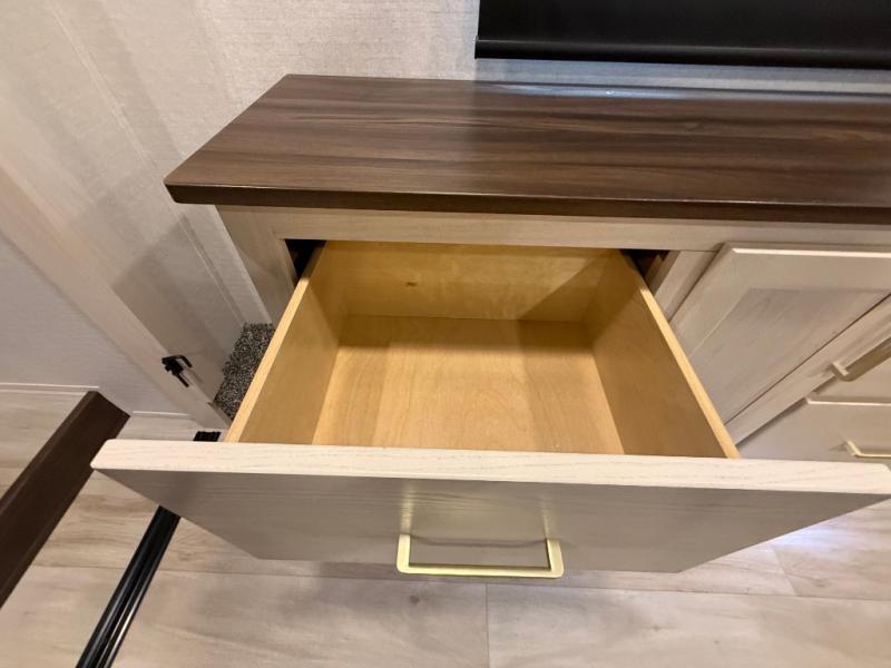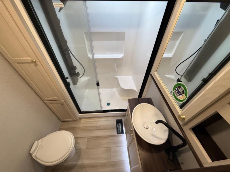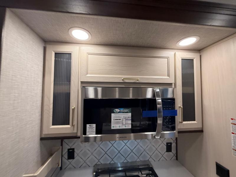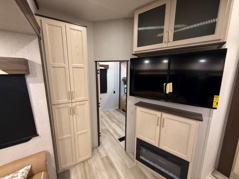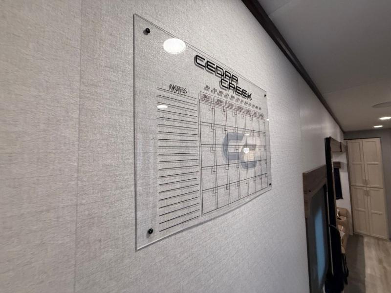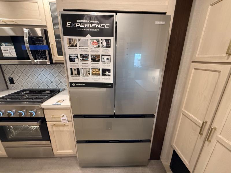 With any Cedar Creek Experience fifth wheel by Forest River, you will bet met with luxury features both inside and out! The True Gelcoat exterior is the best of the best in exteriors and the 3M bonded sidewalls will hold up over years of use. There is also a new 101'' wide-body frame, a Road Warrior suspension, plus a TST tire pressure monitoring system to make towing that much easier. You will find a hidden front storage compartment, along with a 4' x 6' ABS, ribbed, removable underbelly panels, and 6-point hydraulic leveling system, plus many more exterior conveniences. The interior will have you feeling like you haven't left home with vinyl floor coverings, power theater seating with USB ports, a cozy fireplace, vinyl floor covering and the list of comforts goes on! Each model is also pre-wired for satellite to the roof, and you're sure to never go bored with a Smart TV in the bedroom!