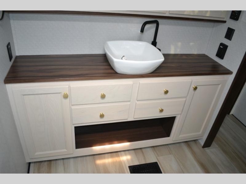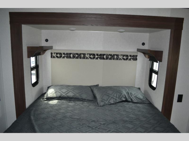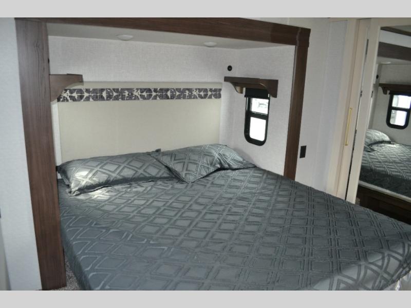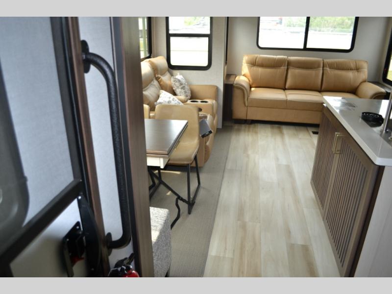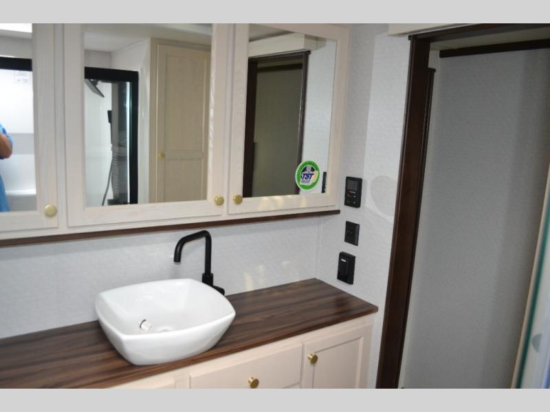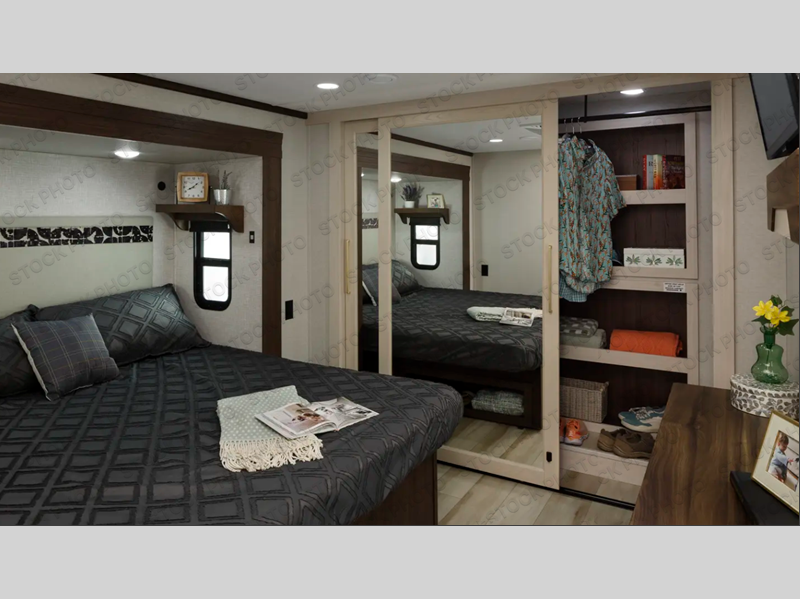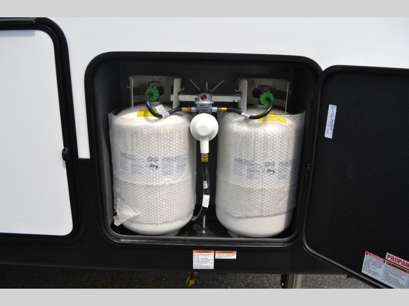 With any Cedar Creek Experience fifth wheel by Forest River, you will bet met with luxury features both inside and out! The True Gelcoat exterior is the best of the best in exteriors and the 3M bonded sidewalls will hold up over years of use. There is also a new 101'' wide-body frame, a Road Warrior suspension, plus a TST tire pressure monitoring system to make towing that much easier. You will find a hidden front storage compartment, along with a 4' x 6' ABS, ribbed, removable underbelly panels, and 6-point hydraulic leveling system, plus many more exterior conveniences. The interior will have you feeling like you haven't left home with vinyl floor coverings, power theater seating with USB ports, a cozy fireplace, vinyl floor covering and the list of comforts goes on! Each model is also pre-wired for satellite to the roof, and you're sure to never go bored with a Smart TV in the bedroom!