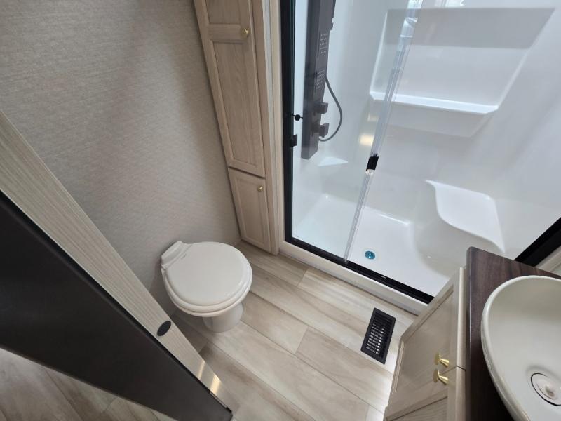 With any Cedar Creek Experience fifth wheel by Forest River, you will bet met with luxury features both inside and out! The True Gelcoat exterior is the best of the best in exteriors and the 3M bonded sidewalls will hold up over years of use. There is also a new 101'' wide-body frame, a Road Warrior suspension, plus a TST tire pressure monitoring system to make towing that much easier. You will find a hidden front storage compartment, along with a 4' x 6' ABS, ribbed, removable underbelly panels, and 6-point hydraulic leveling system, plus many more exterior conveniences. The interior will have you feeling like you haven't left home with vinyl floor coverings, power theater seating with USB ports, a cozy fireplace, vinyl floor covering and the list of comforts goes on! Each model is also pre-wired for satellite to the roof, and you're sure to never go bored with a Smart TV in the bedroom!