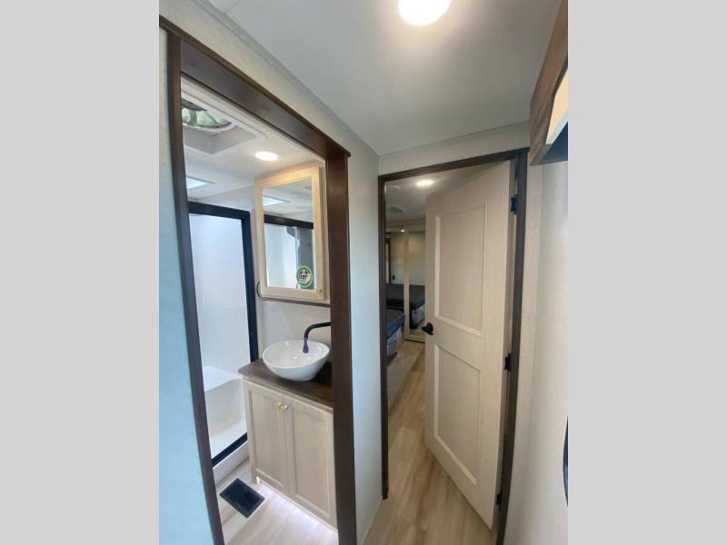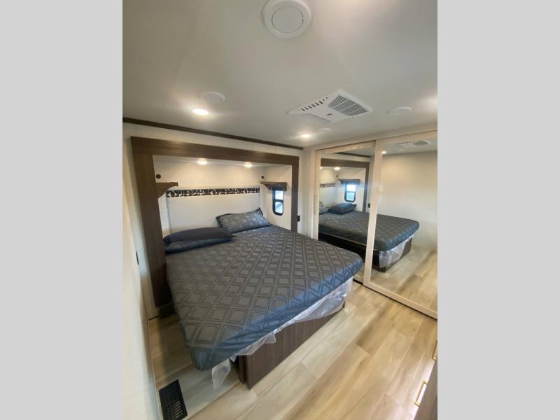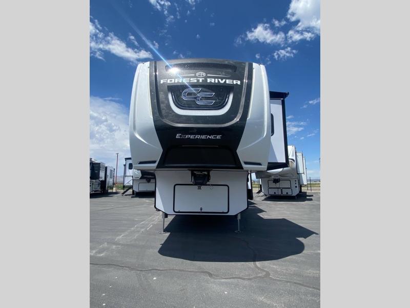 With any Cedar Creek Experience fifth wheel by Forest River, you will bet met with luxury features both inside and out! The True Gelcoat exterior is the best of the best in exteriors and the 3M bonded sidewalls will hold up over years of use. There is also a new 101'' wide-body frame, a Road Warrior suspension, plus a TST tire pressure monitoring system to make towing that much easier. You will find a hidden front storage compartment, along with a 4' x 6' ABS, ribbed, removable underbelly panels, and 6-point hydraulic leveling system, plus many more exterior conveniences. The interior will have you feeling like you haven't left home with vinyl floor coverings, power theater seating with USB ports, a cozy fireplace, vinyl floor covering and the list of comforts goes on! Each model is also pre-wired for satellite to the roof, and you're sure to never go bored with a Smart TV in the bedroom!