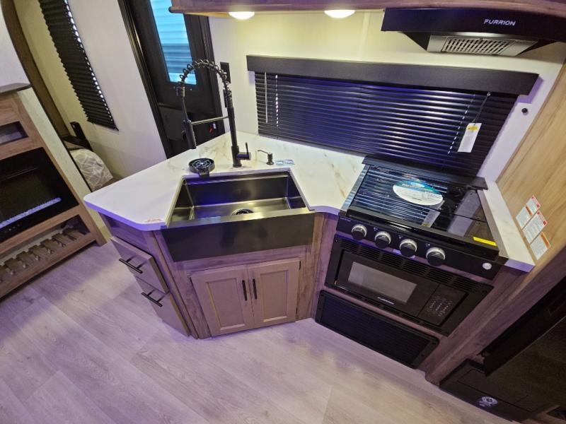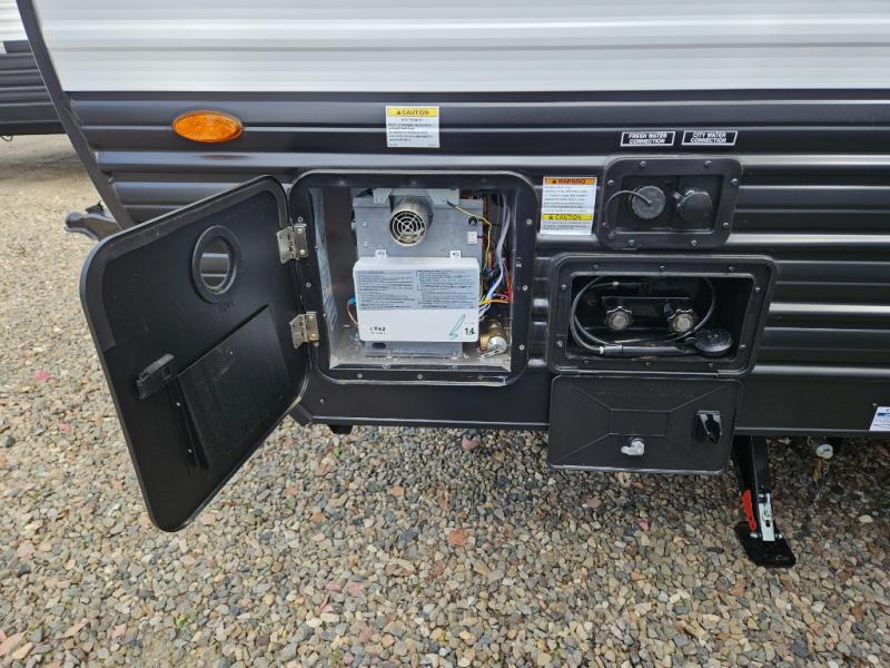 Whether it's a journey that will take you to new locations or a tried-and-true getaway to that favorite and memorable destination, the Forest River Cherokee Grey Wolf travel trailers and toy haulers are going to make the trip worth it every single time! You can travel in confidence with the premium wheel package, seamless roofing membrane with heat reflectivity, Power Gear frame technology with space-saver rail design, and Cherokee back-up camera system. The Cherokee Grey Wolf's interior is highly attractive with its stainless steel kitchen suite package and premium bedding ensemble and comforter. You will also find a black waste tank flush-out kit, an outside shower with hot and cold water, an armored underbelly tank enclosure, and an RV grill quick connect.