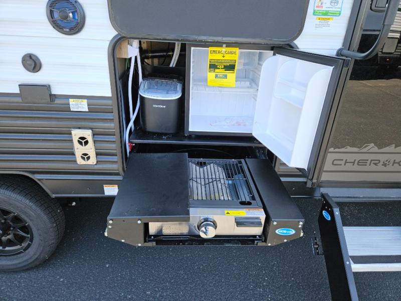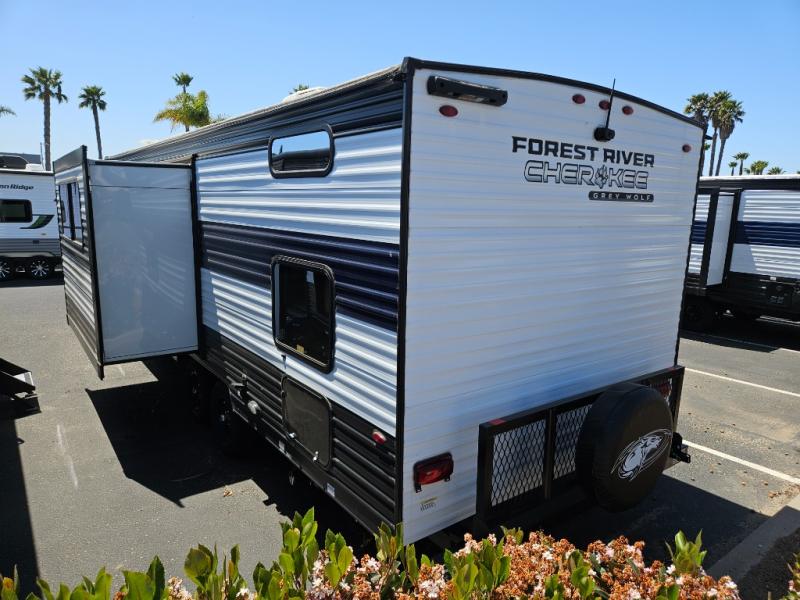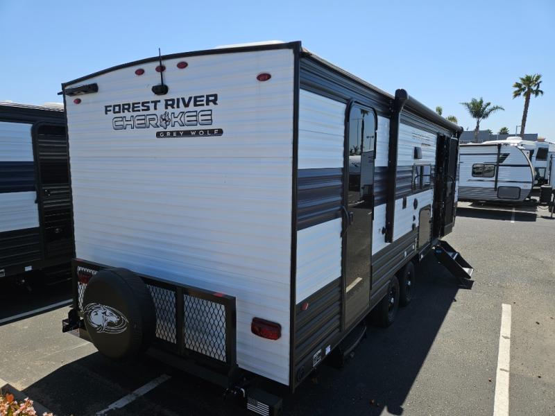 Whether it's a journey that will take you to new locations or a tried-and-true getaway to that favorite and memorable destination, the Forest River Cherokee Grey Wolf travel trailers and toy haulers are going to make the trip worth it every single time! You can travel in confidence with the premium wheel package, seamless roofing membrane with heat reflectivity, Power Gear frame technology with space-saver rail design, and Cherokee back-up camera system. The Cherokee Grey Wolf's interior is highly attractive with its stainless steel kitchen suite package and premium bedding ensemble and comforter. You will also find a black waste tank flush-out kit, an outside shower with hot and cold water, an armored underbelly tank enclosure, and an RV grill quick connect.