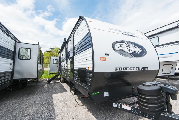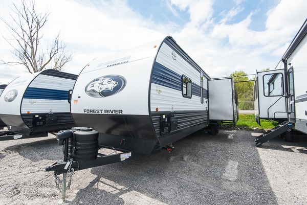 If the open road is calling your name, then answer it with one of these Forest River Cherokee travel trailers or toy haulers! A seamless roofing membrane with heat reflectivity covers these units and an armored underbelly tank enclosure protects it from road debris. The Power Gear frame technology holds them together and also comes with a space saver rail design. An outside shower with hot and cold water helps to keep the dirt outside where it belongs. With the Campfire package, you will get an air fryer, an on demand tankless water heater, bedroom cabinets, and more convenient features. A few other features you will appreciate include a super kitchen, USB charging station, and light filtering sheer shading premium blackout zebra shades for added privacy. Come find your favorite model today!