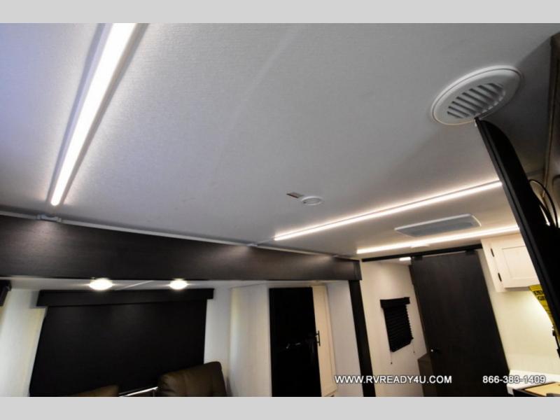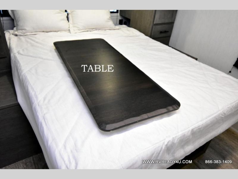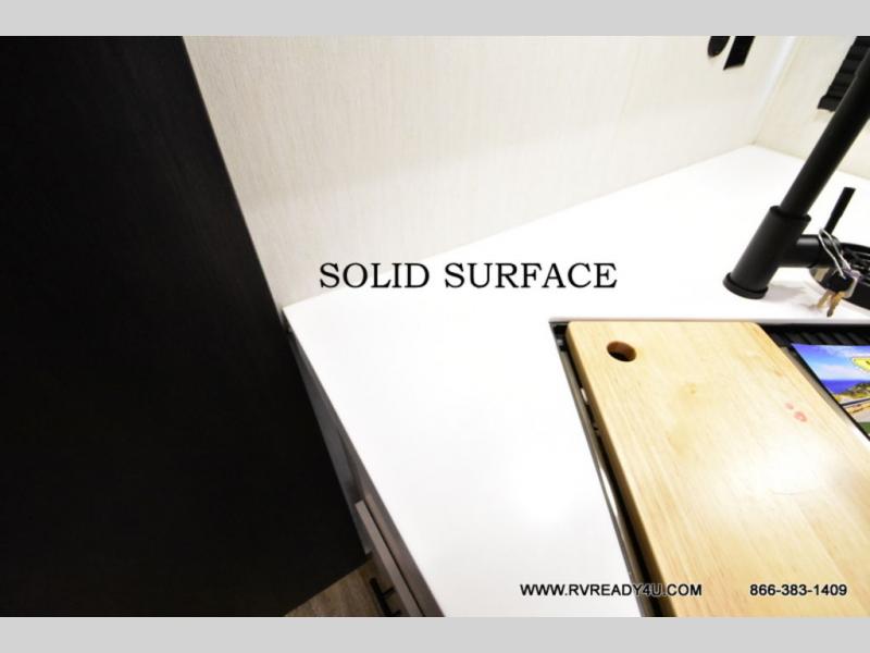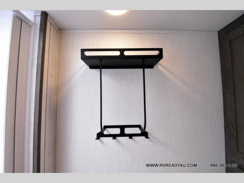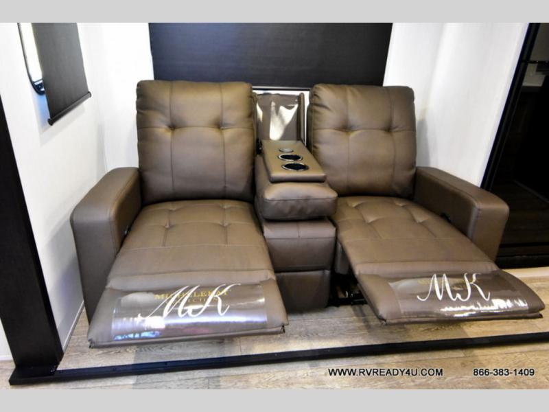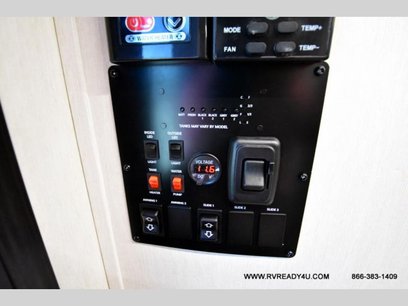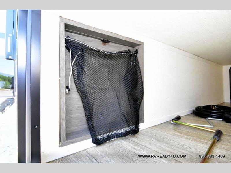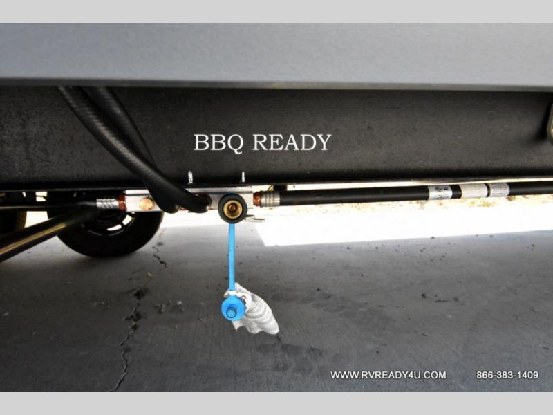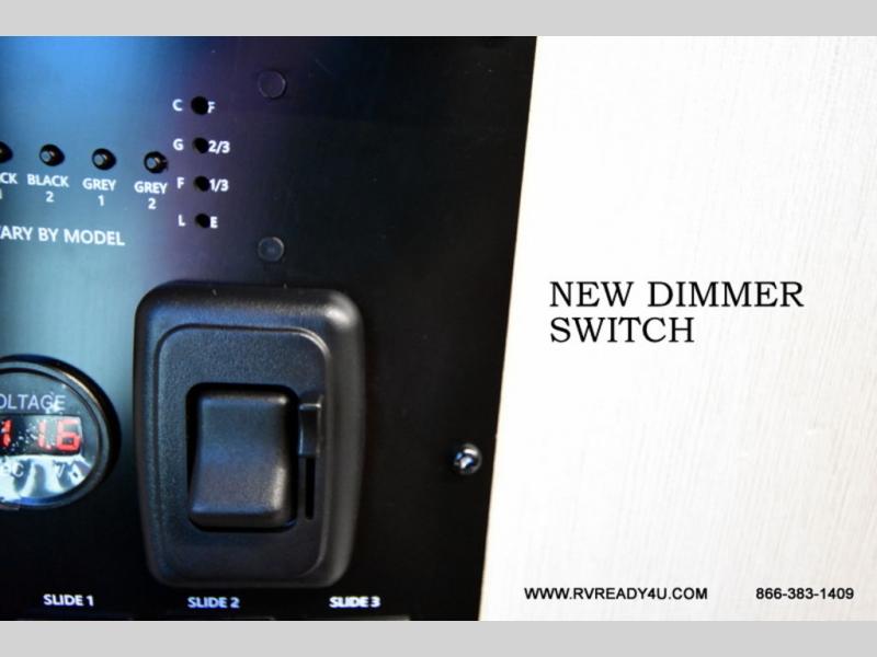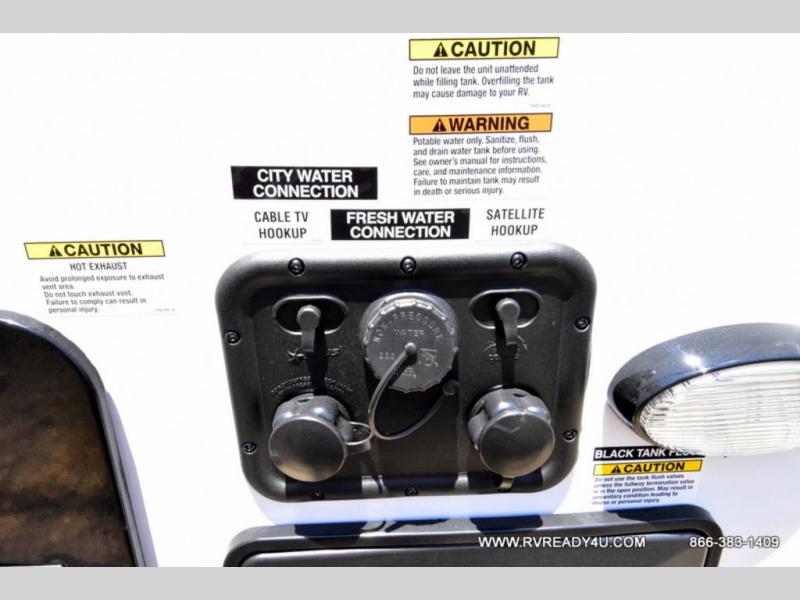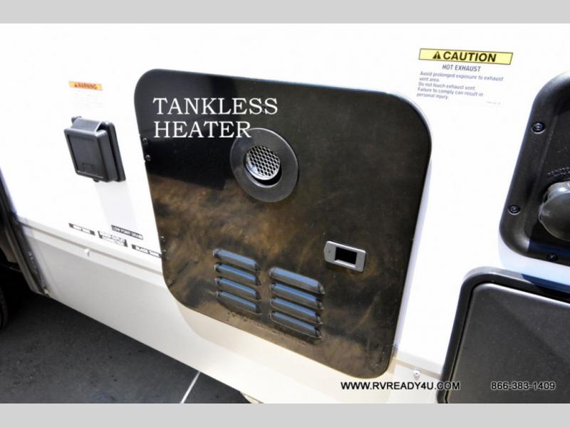 Looking for the perfect trailer for two with a spacious bathroom and bedroom? This Alpha Wolf provides a rear oversized bathroom complete with linen storage and a sliding door that saves space and looks great. The front bedroom includes a walk-around queen bed, dual wardrobes, a sliding door plus windows for natural lighting and great views. The main living and kitchen area is spacious as well with a large slide out that includes theater seating with a removable table across from the entertainment center with a fireplace, a 12V residential style refrigerator for lots of cold storage, and a pantry for your snacks and dry goods. You can decide to cook indoors on the three burner cooktop, or head outdoors to cook on the outside kitchen!