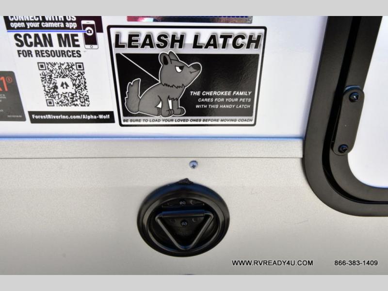 With any Cherokee Alpha Wolf travel trailer by Forest River you'll enjoy outstanding amenities, quality construction, and an affordable price. Each model features a "ToughBend" rigid skirt metal design, 5/8" tongue and groove plywood floor decking, and a "SuperTruss" roof structure that will hold up through years of camping memories. There is a pet friendly "clean sweep" floor design with no heat vents indoors, along with a super lumen lighting system, a 15,000 BTU quick cool central air conditioning, and many more comforts. There are many convenient exterior features such as, Leash Latch pet safety technology, an outside shower with hot and cold water, On The Go rear ladder prep, and exterior steps with oversized landing and quick release. The Weather Guard Package will add protection against the elements with an armored underbelly tank enclosure and forced air heat, thermo-control reflective safety glass windows, and upgraded laminated walls with block foam insulation!