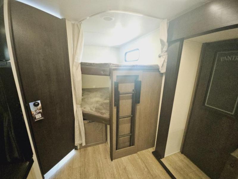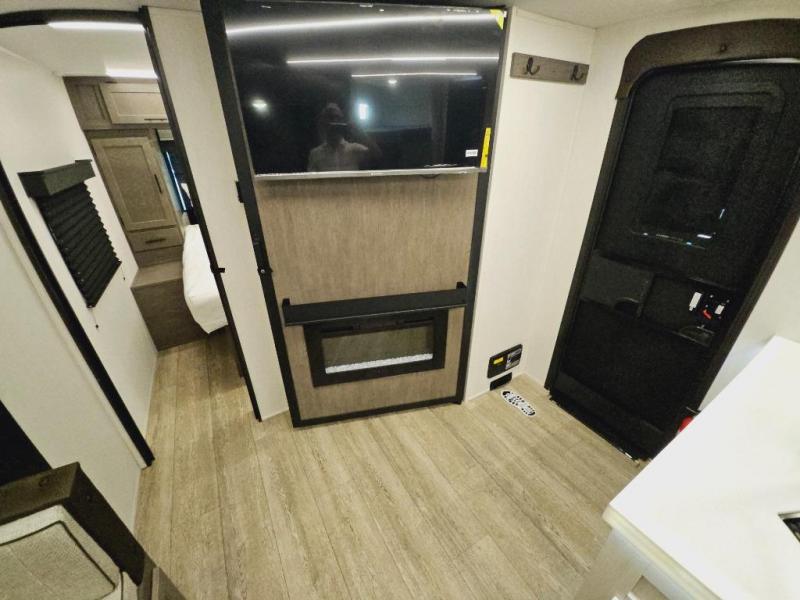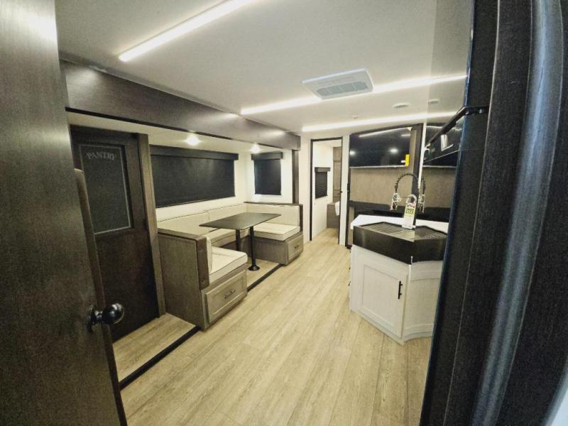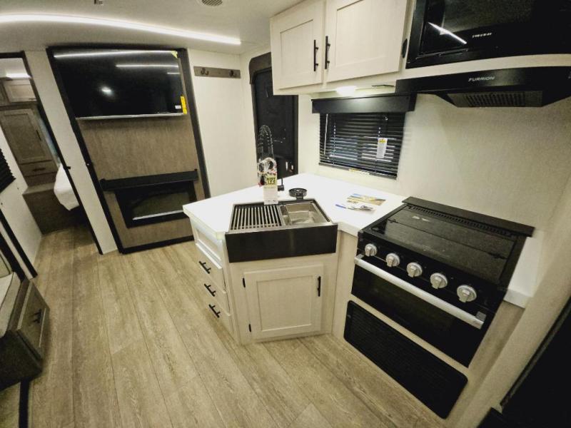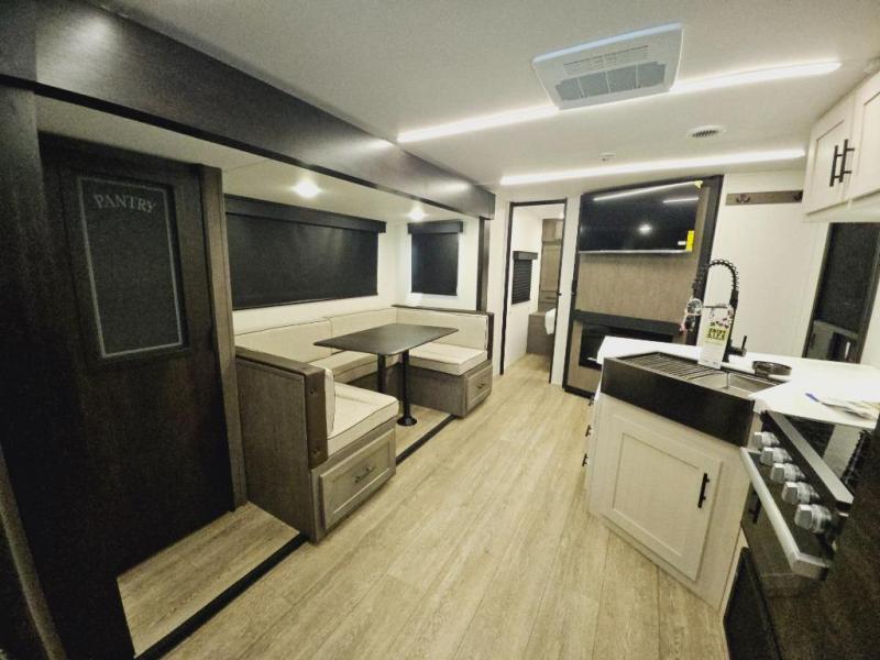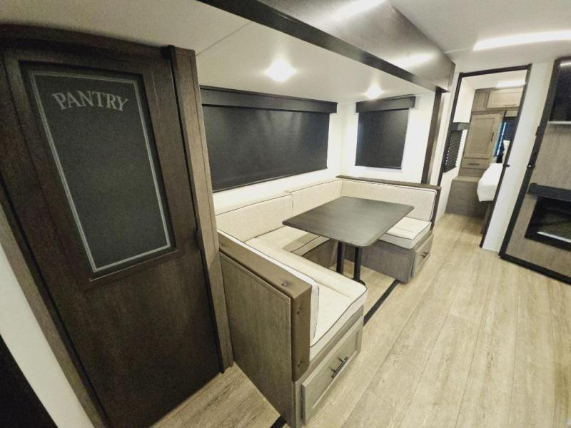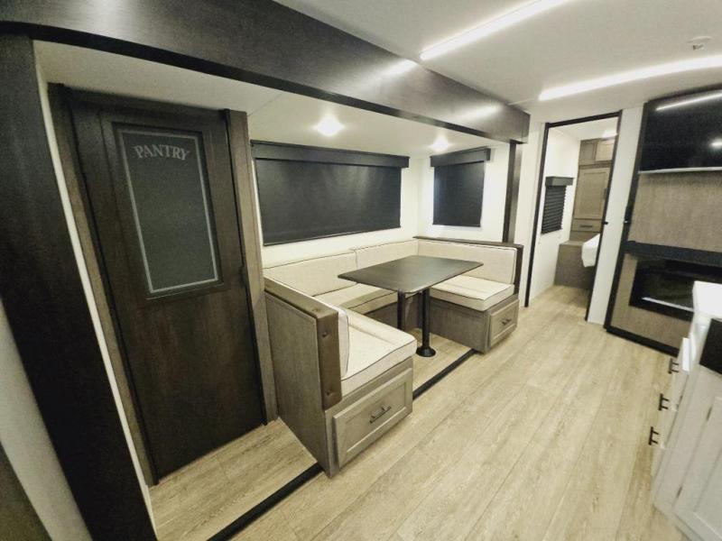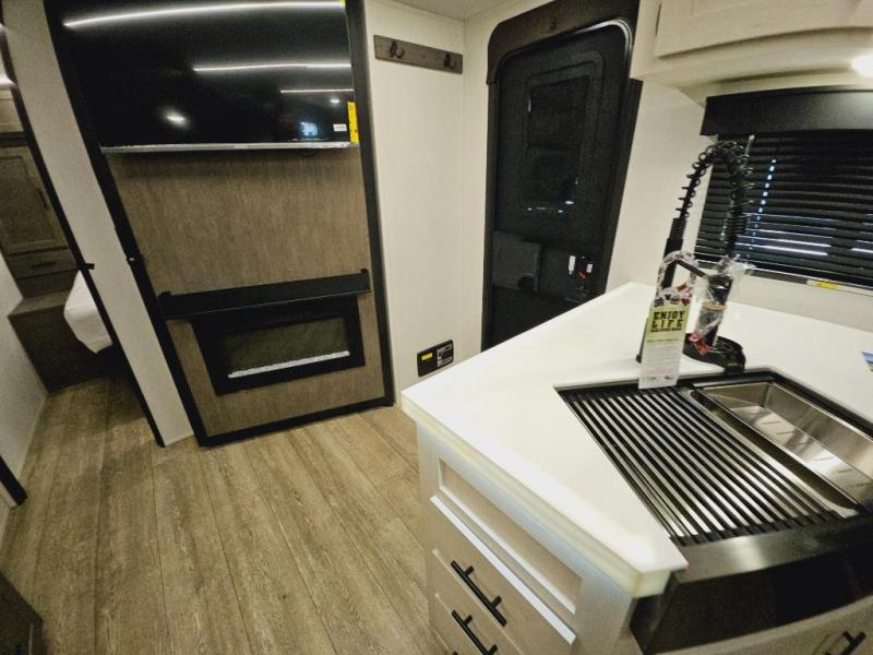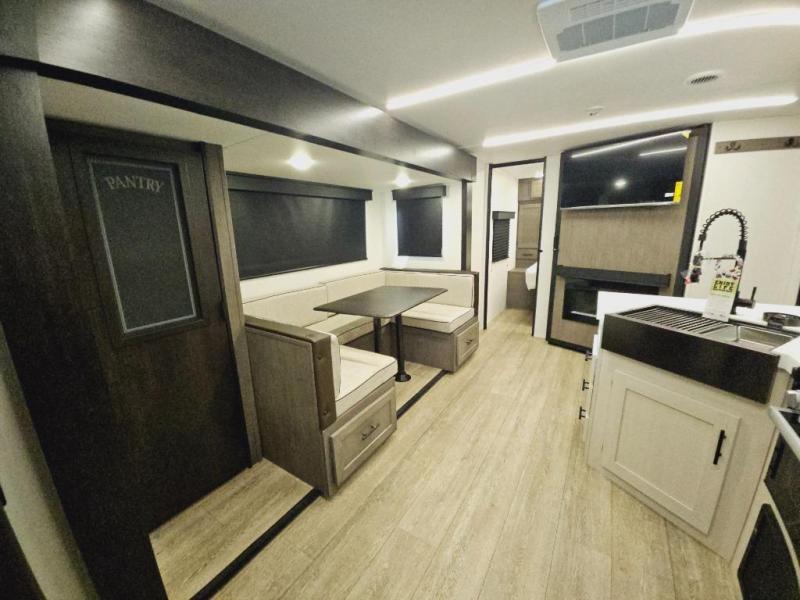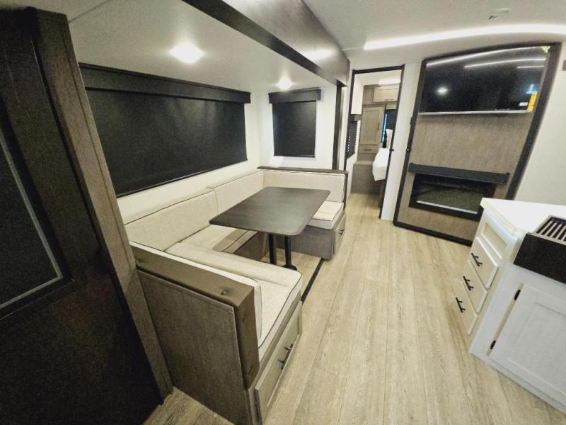 Out door Kitchen/ 12V 11CF Refer / Juice Pack / MEGA DINETTE SLIDE / TWO FULL SIZE BUNKS/FIRE PLACE