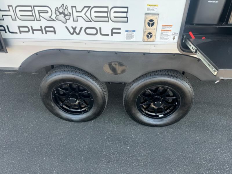 With any Cherokee Alpha Wolf travel trailer by Forest River you'll enjoy outstanding amenities, quality construction, and an affordable price. Each model features a "ToughBend" rigid skirt metal design, 5/8" tongue and groove plywood floor decking, and a "SuperTruss" roof structure that will hold up through years of camping memories. There is a pet friendly "clean sweep" floor design with no heat vents indoors, along with a super lumen lighting system, a 15,000 BTU quick cool central air conditioning, and many more comforts. There are many convenient exterior features such as, Leash Latch pet safety technology, an outside shower with hot and cold water, On The Go rear ladder prep, and exterior steps with oversized landing and quick release. The Weather Guard Package will add protection against the elements with an armored underbelly tank enclosure and forced air heat, thermo-control reflective safety glass windows, and upgraded laminated walls with block foam insulation!