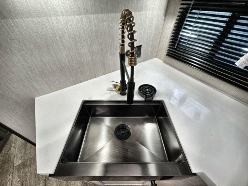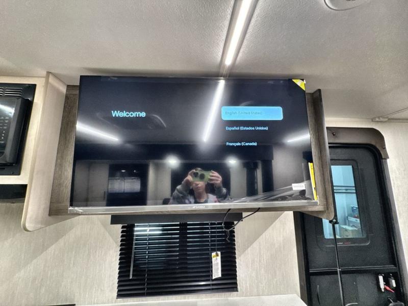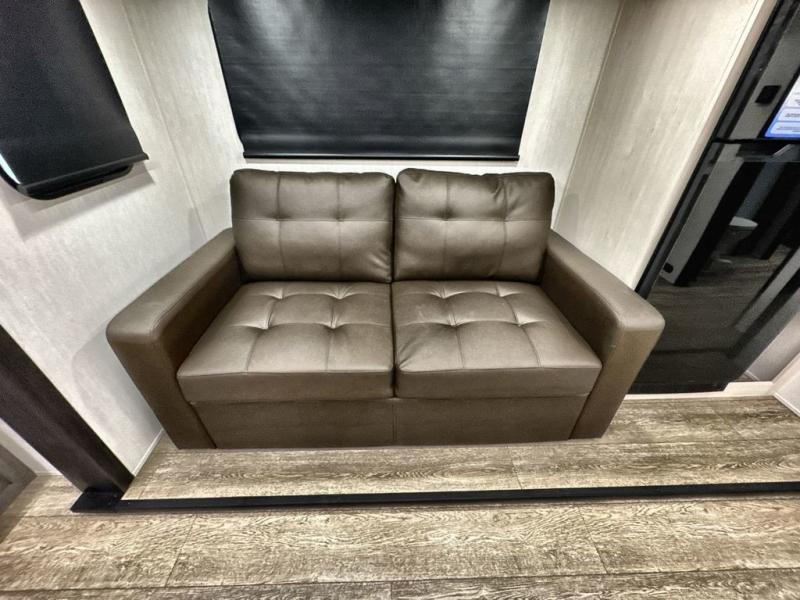 You will love all that this travel trailer has to offer! The rear living area includes a U-shaped dinette with a rear Pano-Vision window plus a tri-fold sofa across from the entertainment center with a fireplace. The kitchen has everything needed for food prep and serving, and the outside kitchen with ice and a refrigerator will be a favorite as well. The 20' awning will provide an outdoor living area; just grab your camping chairs from the outside storage areas. When you want to call it a night, fall quickly to sleep on the queen bed in the front bedroom with easy access to the walk-through bathroom, plus the bedroom has one of the dual entry doors to the unit.