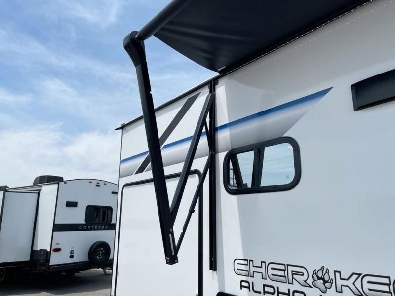 With any Cherokee Alpha Wolf travel trailer by Forest River you'll enjoy outstanding amenities, quality construction, and an affordable price. Each model features a "ToughBend" rigid skirt metal design, 5/8" tongue and groove plywood floor decking, and a "SuperTruss" roof structure that will hold up through years of camping memories. There is a pet friendly "clean sweep" floor design with no heat vents indoors, along with a super lumen lighting system, a 15,000 BTU quick cool central air conditioning, and many more comforts. There are many convenient exterior features such as, Leash Latch pet safety technology, an outside shower with hot and cold water, On The Go rear ladder prep, and exterior steps with oversized landing and quick release. The Weather Guard Package will add protection against the elements with an armored underbelly tank enclosure and forced air heat, thermo-control reflective safety glass windows, and upgraded laminated walls with block foam insulation!