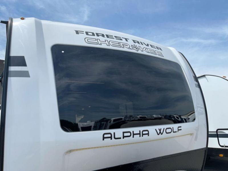 With any Cherokee Alpha Wolf travel trailer by Forest River you'll enjoy outstanding amenities, quality construction, and an affordable price. Each model features a "ToughBend" rigid skirt metal design, 5/8" tongue and groove plywood floor decking, and a "SuperTruss" roof structure that will hold up through years of camping memories. There is a pet friendly "clean sweep" floor design with no heat vents indoors, along with a super lumen lighting system, a 15,000 BTU quick cool central air conditioning, and many more comforts. There are many convenient exterior features such as, Leash Latch pet safety technology, an outside shower with hot and cold water, On The Go rear ladder prep, and exterior steps with oversized landing and quick release. The Weather Guard Package will add protection against the elements with an armored underbelly tank enclosure and forced air heat, thermo-control reflective safety glass windows, and upgraded laminated walls with block foam insulation!
