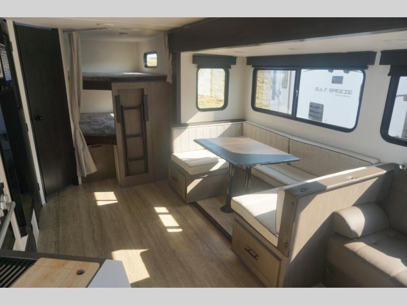 The Cherokee Alpha Wolf 26DBH should be at the top of your list for a half-ton towable, stylish, low-maintenance bunk house. Room to sleep up to 8. Private front bedroom with queen bed. Rear stacked double bunks. Two entry doors. Includes Forest River's "TOP 20" design and equipment features that make the Alpha Wolf 26DBH efficient, comfortable, and convenient.