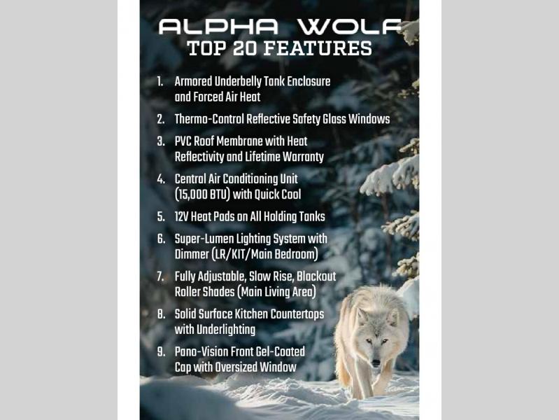 For over 20 years, the Cherokee division of Forest River has produced quality products and has endured to become one of the RV industry’s most widely respected and purchased towable products. Alpha Wolf is the next evolution in Cherokee's renowned quality, floor plan functionality and outstandingly affordable value for your investment. Plainly speaking, Alpha Wolf gives you more for your hard earned dollar!