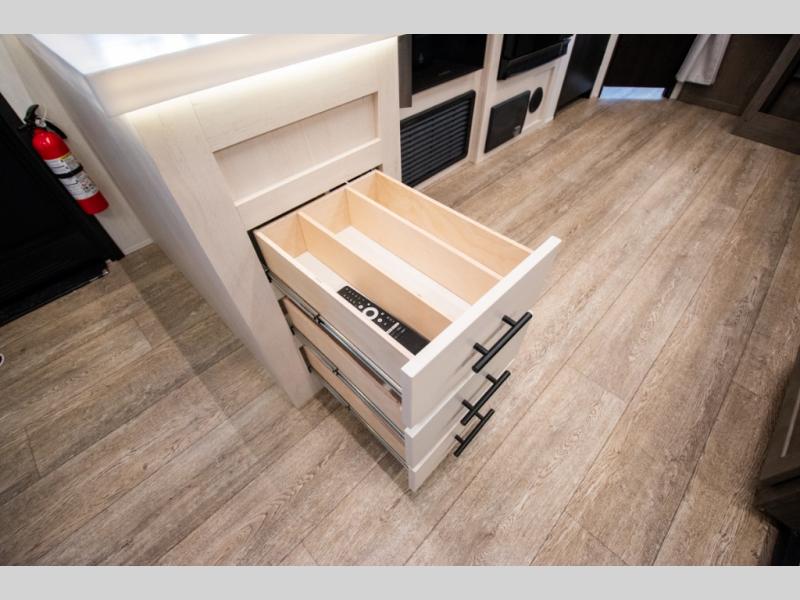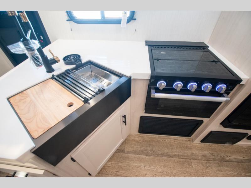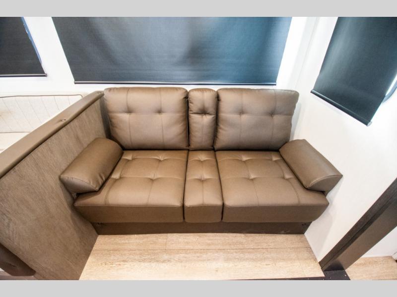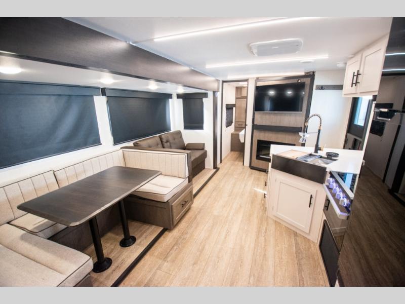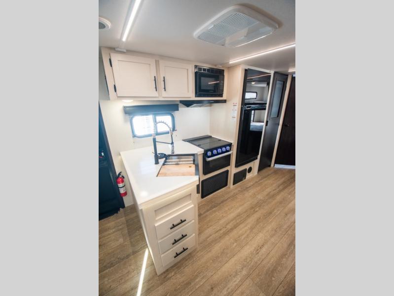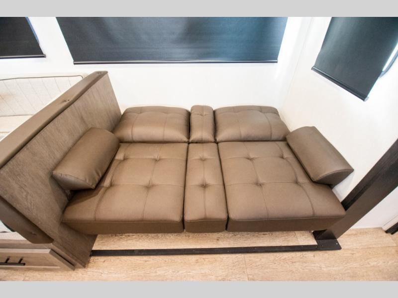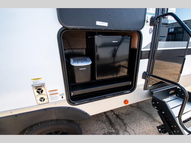 Looking for a multi-sleeper trailer to sleep nine to ten happy campers? You've found it in this dual entry model with an outside kitchen, double-size bunks, and a large slide out! The main living and kitchen area has a U-shaped dinette to utilize as a dining table, game table, work station, and/or an extra sleeping space. You will also find a hidden pantry behind the entertainment center and full kitchen amenities including a large sink and a residential-style refrigerator. The exterior provides a 20' awning for an outdoor living area, outside storage, plus large steps with oversized landing and quick release for convenience. You will also appreciate the Juice Pack that comes with a 100W solar panel, a battery, a 30 AMP solar charger, and more!