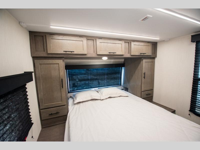 With any Cherokee Alpha Wolf travel trailer by Forest River you'll enjoy outstanding amenities, quality construction, and an affordable price. Each model features a "ToughBend" rigid skirt metal design, 5/8" tongue and groove plywood floor decking, and a "SuperTruss" roof structure that will hold up through years of camping memories. There is a pet friendly "clean sweep" floor design with no heat vents indoors, along with a super lumen lighting system, a 15,000 BTU quick cool central air conditioning, and many more comforts. There are many convenient exterior features such as, Leash Latch pet safety technology, an outside shower with hot and cold water, On The Go rear ladder prep, and exterior steps with oversized landing and quick release. The Weather Guard Package will add protection against the elements with an armored underbelly tank enclosure and forced air heat, thermo-control reflective safety glass windows, and upgraded laminated walls with block foam insulation!