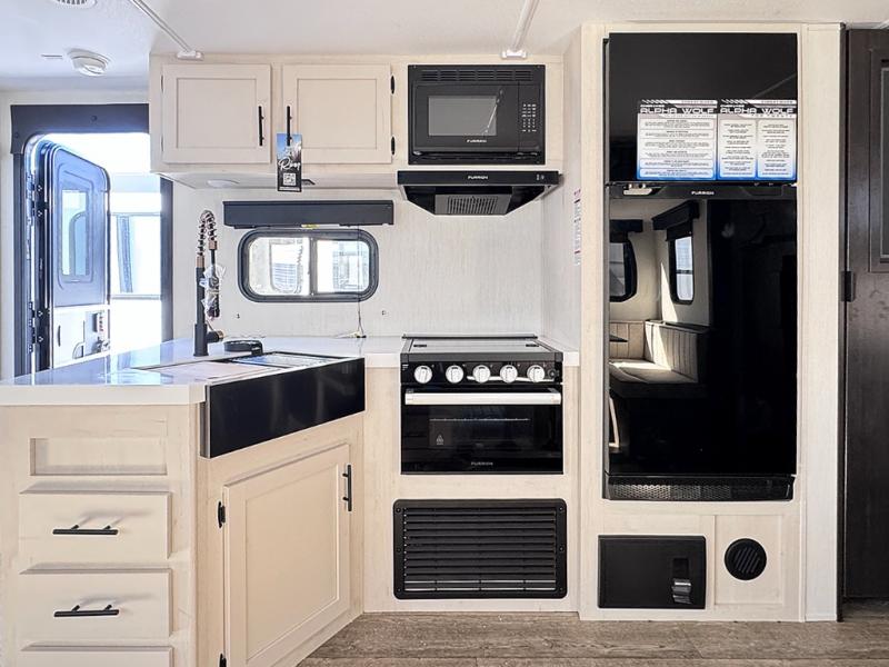With any Cherokee Alpha Wolf travel trailer by Forest River you'll enjoy outstanding amenities, quality construction, and an affordable price. Each model features a "ToughBend" rigid skirt metal design, 5/8" tongue and groove plywood floor decking, and a "SuperTruss" roof structure that will hold up through years of camping memories. There is a pet friendly "clean sweep" floor design with no heat vents indoors, along with a super lumen lighting system, a 15,000 BTU quick cool central air conditioning, and many more comforts. There are many convenient exterior features such as, Leash Latch pet safety technology, an outside shower with hot and cold water, On The Go rear ladder prep, and exterior steps with oversized landing and quick release. The Weather Guard Package will add protection against the elements with an armored underbelly tank enclosure and forced air heat, thermo-control reflective safety glass windows, and upgraded laminated walls with block foam insulation!