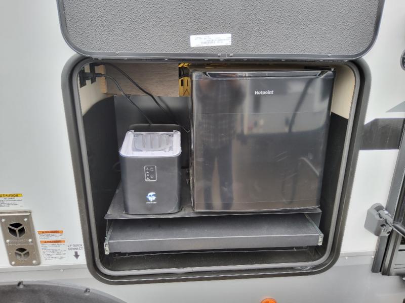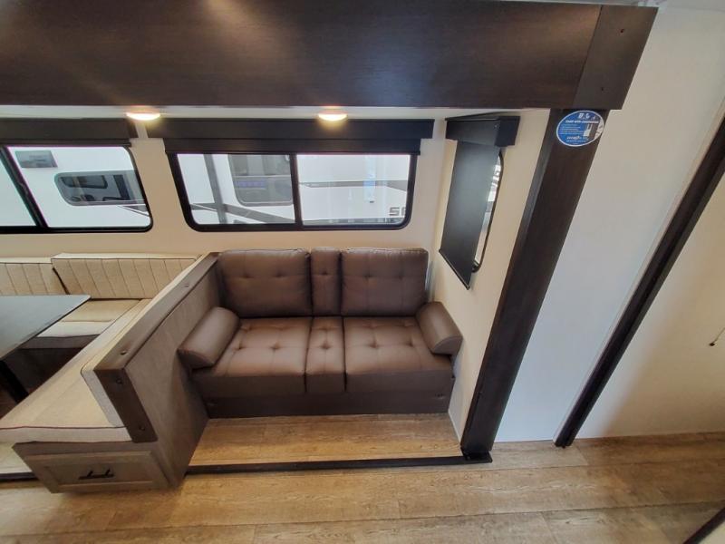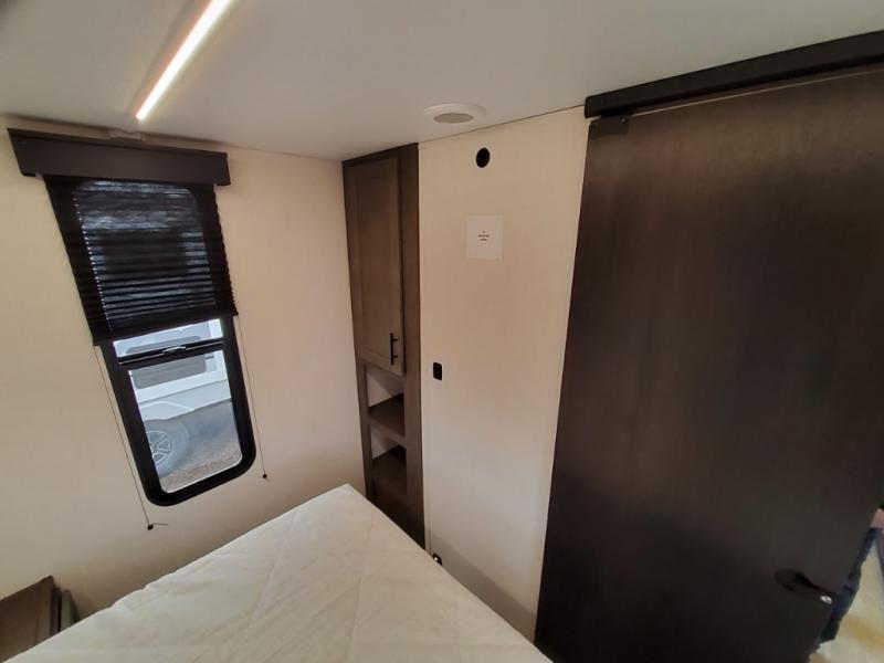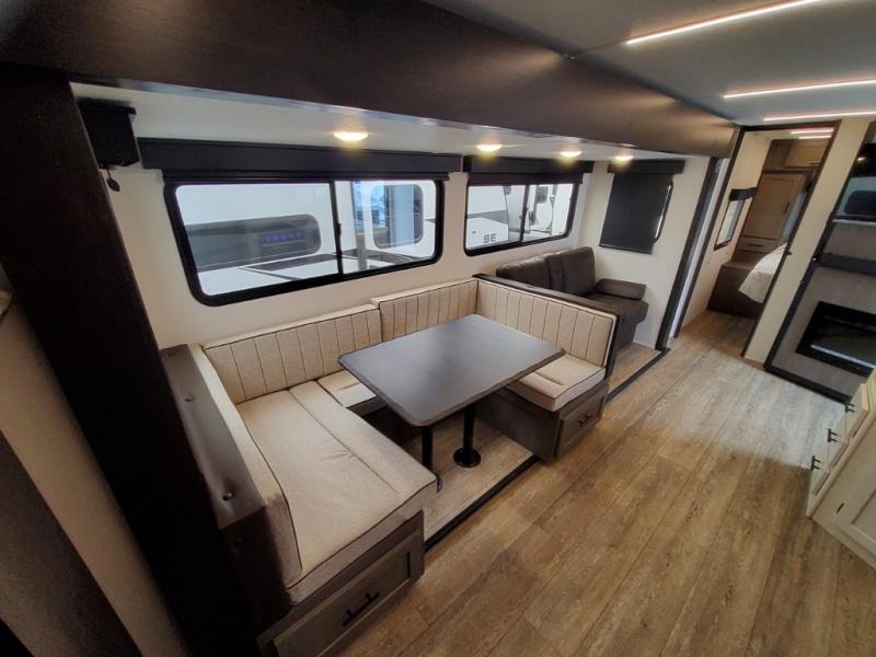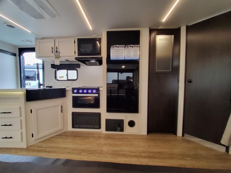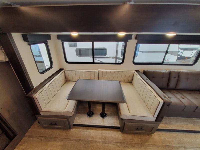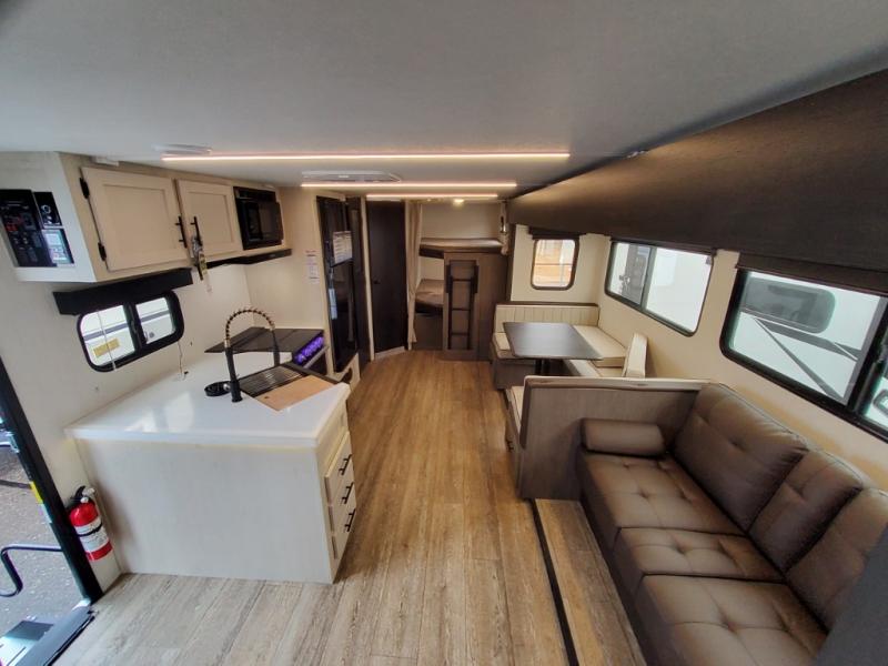 Looking for a multi-sleeper trailer to sleep nine to ten happy campers? You've found it in this dual entry model with an outside kitchen, double-size bunks, and a large slide out! The main living and kitchen area has a U-shaped dinette to utilize as a dining table, game table, work station, and/or an extra sleeping space. You will also find a hidden pantry behind the entertainment center and full kitchen amenities including a large sink and a residential-style refrigerator. The exterior provides a 20' awning for an outdoor living area, outside storage, plus large steps with oversized landing and quick release for convenience. You will also appreciate the Juice Pack that comes with a 100W solar panel, a battery, a 30 AMP solar charger, and more!