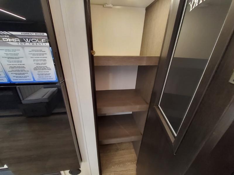 With any Cherokee Alpha Wolf travel trailer by Forest River you'll enjoy outstanding amenities, quality construction, and an affordable price. Each model features a "ToughBend" rigid skirt metal design, 5/8" tongue and groove plywood floor decking, and a "SuperTruss" roof structure that will hold up through years of camping memories. There is a pet friendly "clean sweep" floor design with no heat vents indoors, along with a super lumen lighting system, a 15,000 BTU quick cool central air conditioning, and many more comforts. There are many convenient exterior features such as, Leash Latch pet safety technology, an outside shower with hot and cold water, On The Go rear ladder prep, and exterior steps with oversized landing and quick release. The Weather Guard Package will add protection against the elements with an armored underbelly tank enclosure and forced air heat, thermo-control reflective safety glass windows, and upgraded laminated walls with block foam insulation!