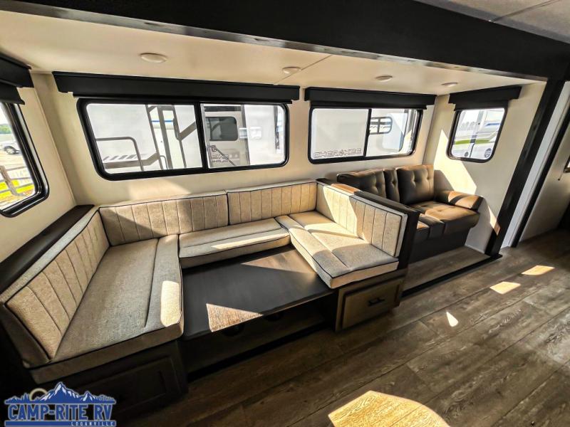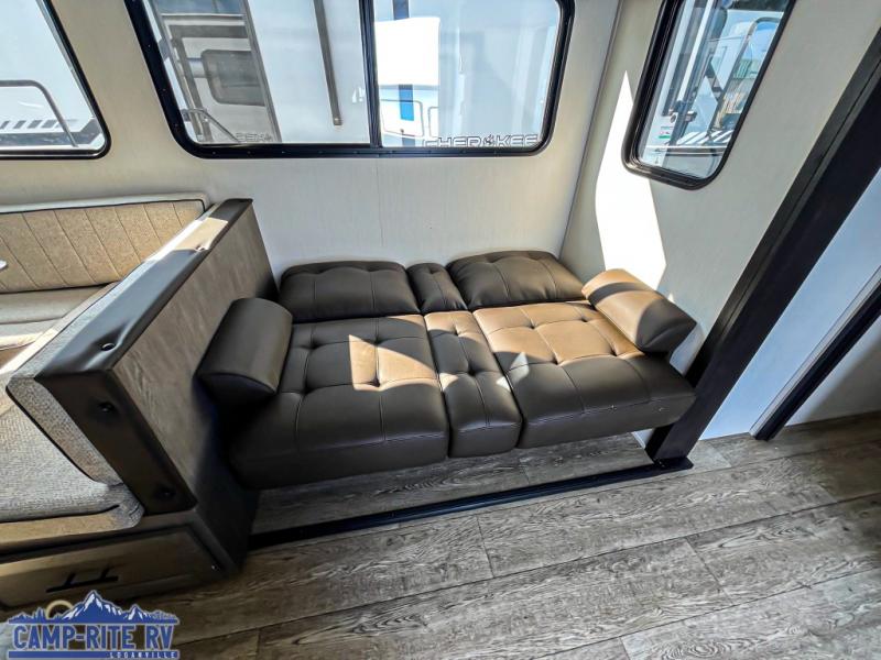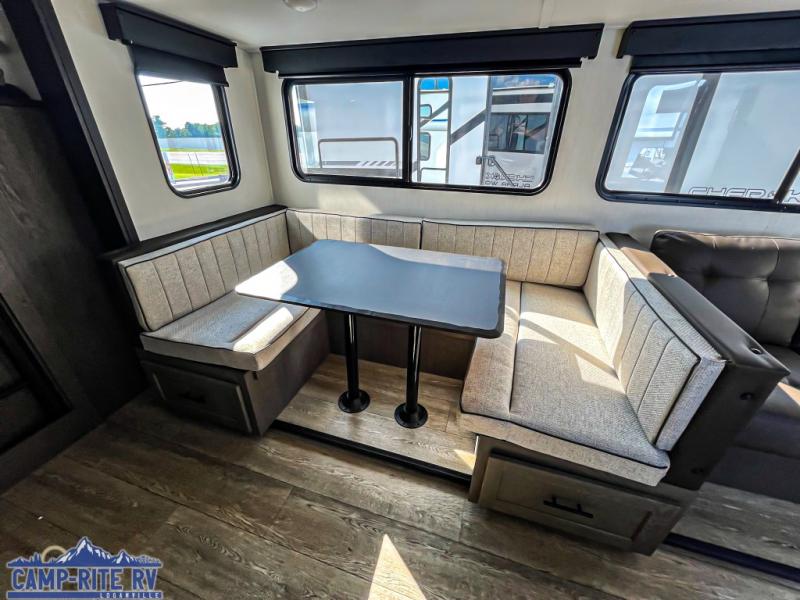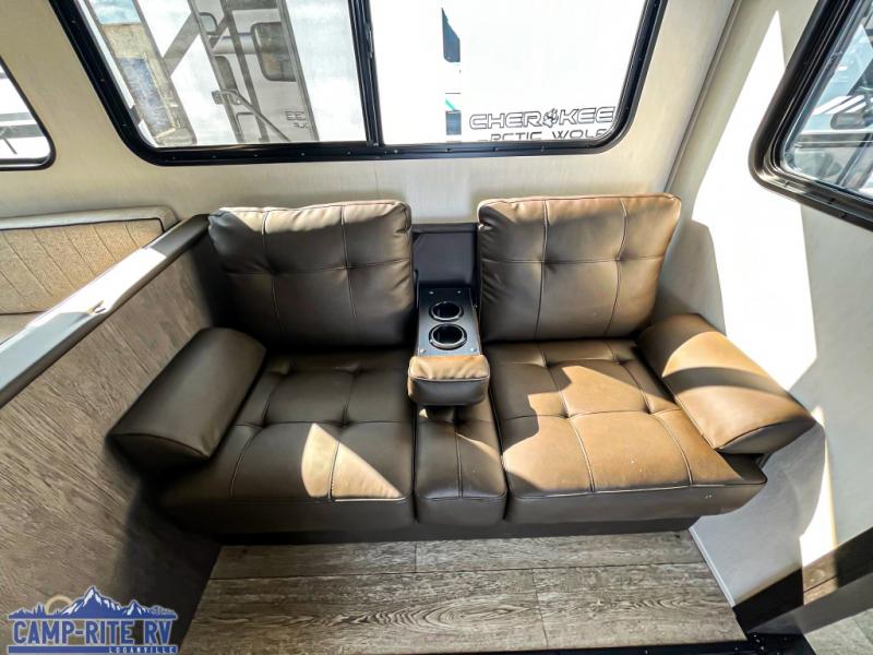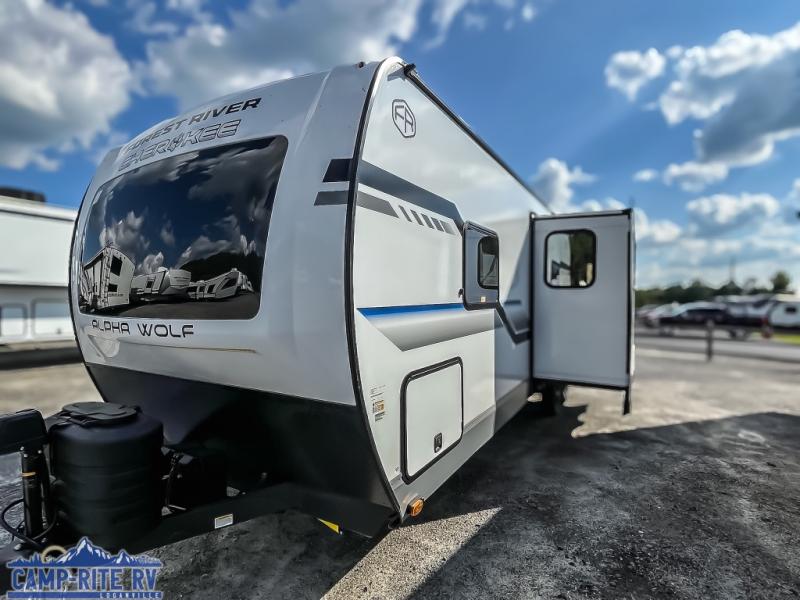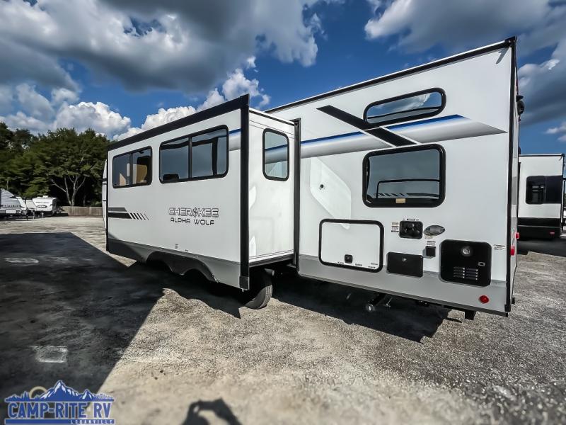 With any Cherokee Alpha Wolf travel trailer by Forest River you'll enjoy outstanding amenities, quality construction, and an affordable price. Each model features a "ToughBend" rigid skirt metal design, 5/8" tongue and groove plywood floor decking, and a "SuperTruss" roof structure that will hold up through years of camping memories. There is a pet friendly "clean sweep" floor design with no heat vents indoors, along with a super lumen lighting system, a 15,000 BTU quick cool central air conditioning, and many more comforts. There are many convenient exterior features such as, Leash Latch pet safety technology, an outside shower with hot and cold water, On The Go rear ladder prep, and exterior steps with oversized landing and quick release. The Weather Guard Package will add protection against the elements with an armored underbelly tank enclosure and forced air heat, thermo-control reflective safety glass windows, and upgraded laminated walls with block foam insulation!