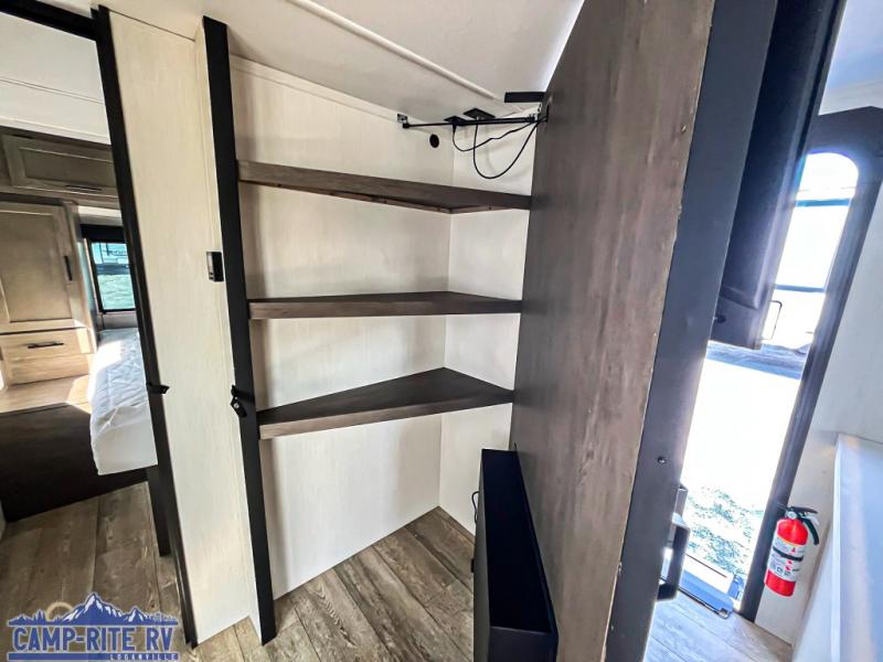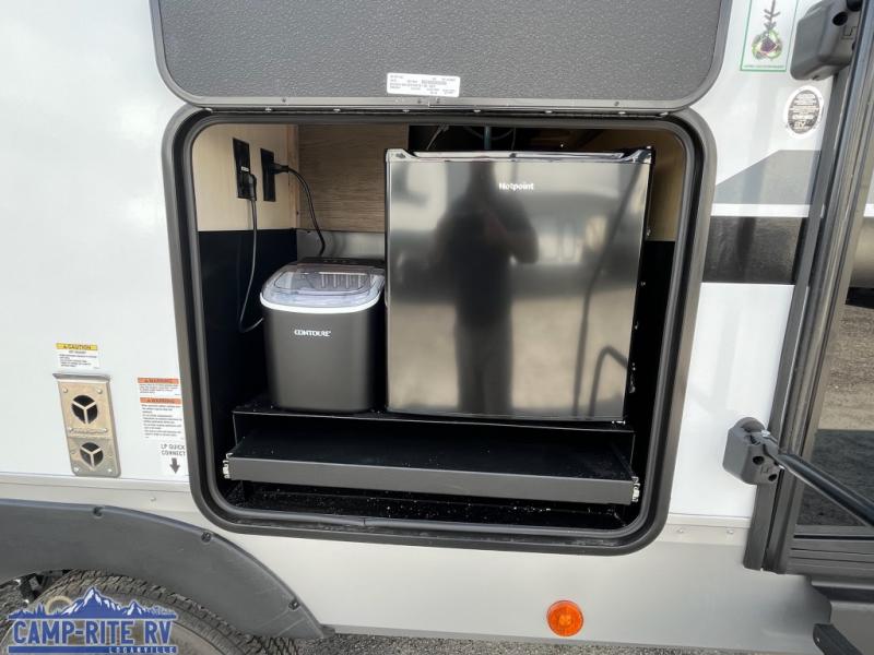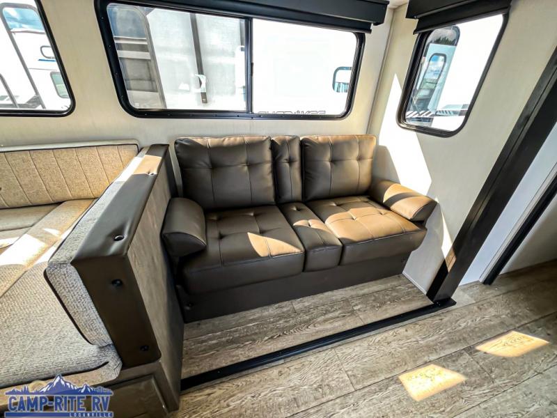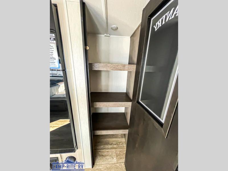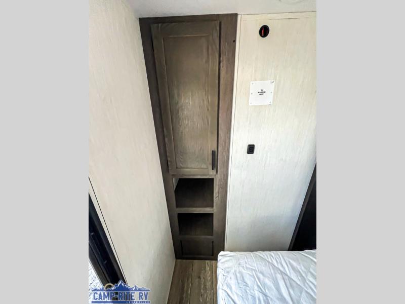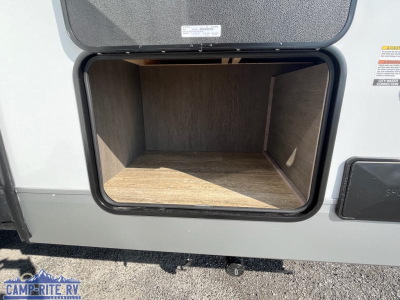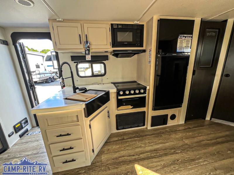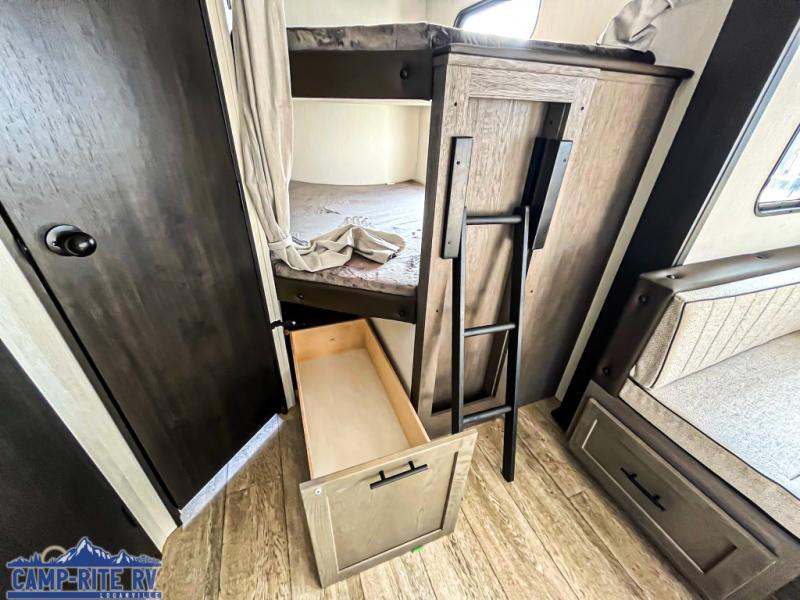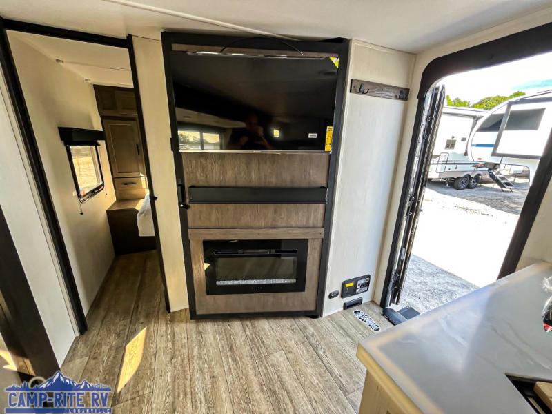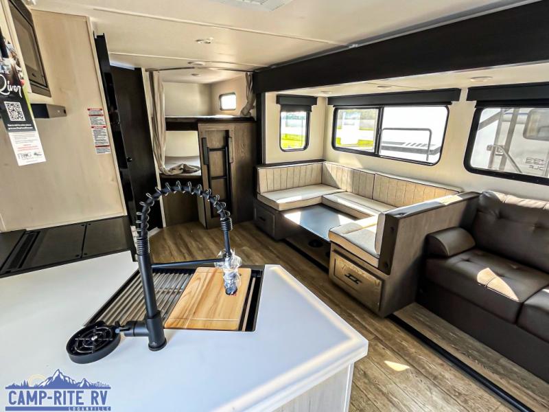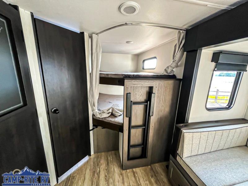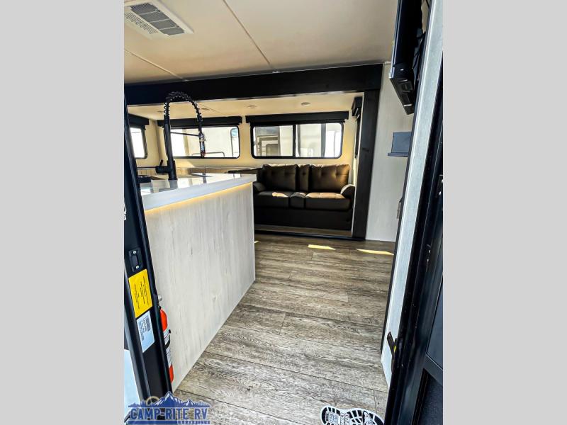 Looking for a multi-sleeper trailer to sleep nine to ten happy campers? You've found it in this dual entry model with an outside kitchen, double-size bunks, and a large slide out! The main living and kitchen area has a U-shaped dinette to utilize as a dining table, game table, work station, and/or an extra sleeping space. You will also find a hidden pantry behind the entertainment center and full kitchen amenities including a large sink and a residential-style refrigerator. The exterior provides a 20' awning for an outdoor living area, outside storage, plus large steps with oversized landing and quick release for convenience. You will also appreciate the Juice Pack that comes with a 100W solar panel, a battery, a 30 AMP solar charger, and more!