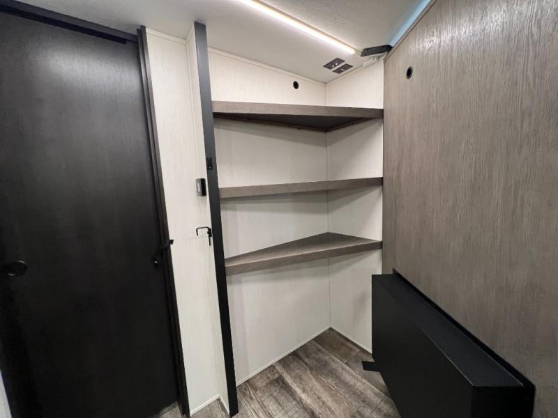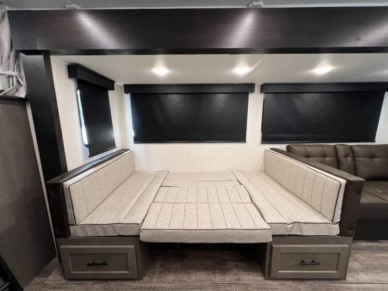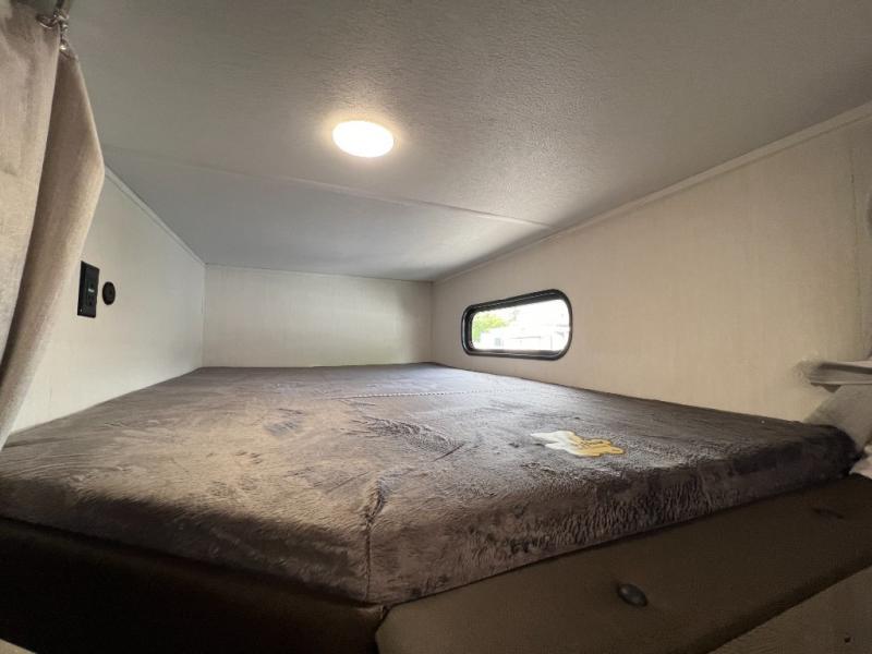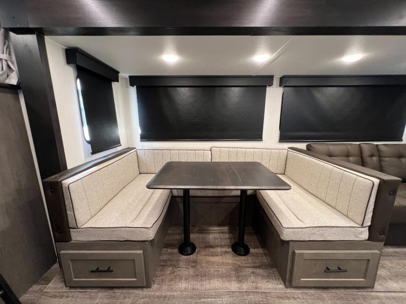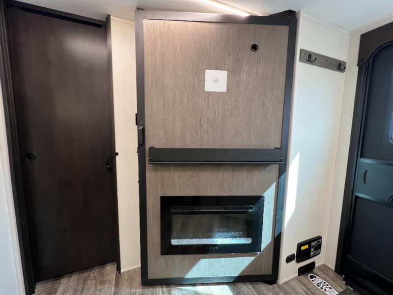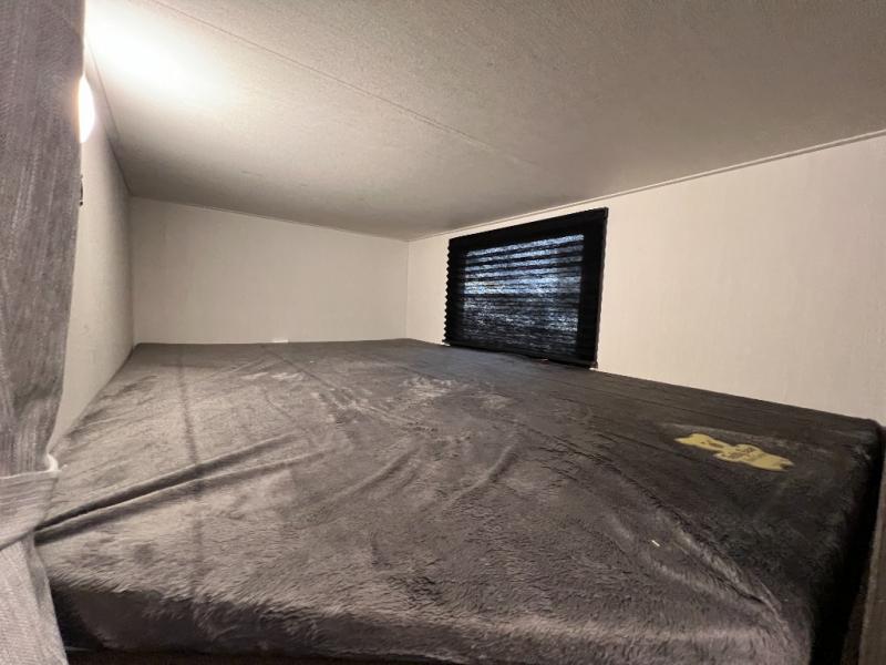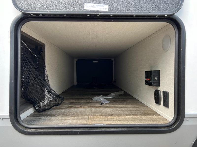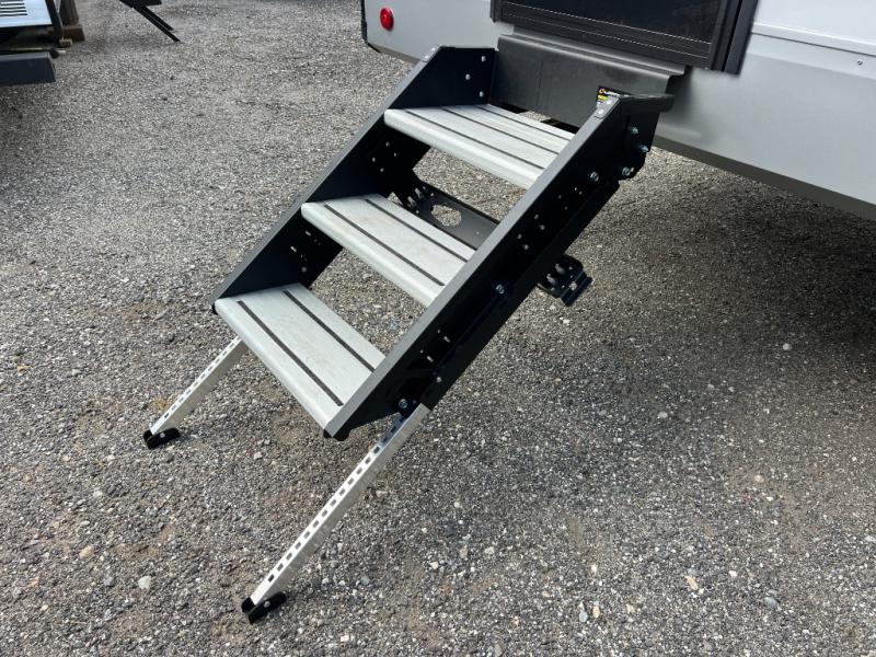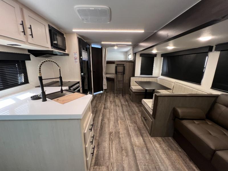 Looking for a multi-sleeper trailer to sleep nine to ten happy campers? You've found it in this dual entry model with an outside kitchen, double-size bunks, and a large slide out! The main living and kitchen area has a U-shaped dinette to utilize as a dining table, game table, work station, and/or an extra sleeping space. You will also find a hidden pantry behind the entertainment center and full kitchen amenities including a large sink and a residential-style refrigerator. The exterior provides a 20' awning for an outdoor living area, outside storage, plus large steps with oversized landing and quick release for convenience. You will also appreciate the Juice Pack that comes with a 100W solar panel, a battery, a 30 AMP solar charger, and more!
