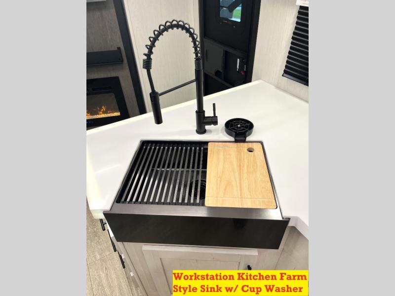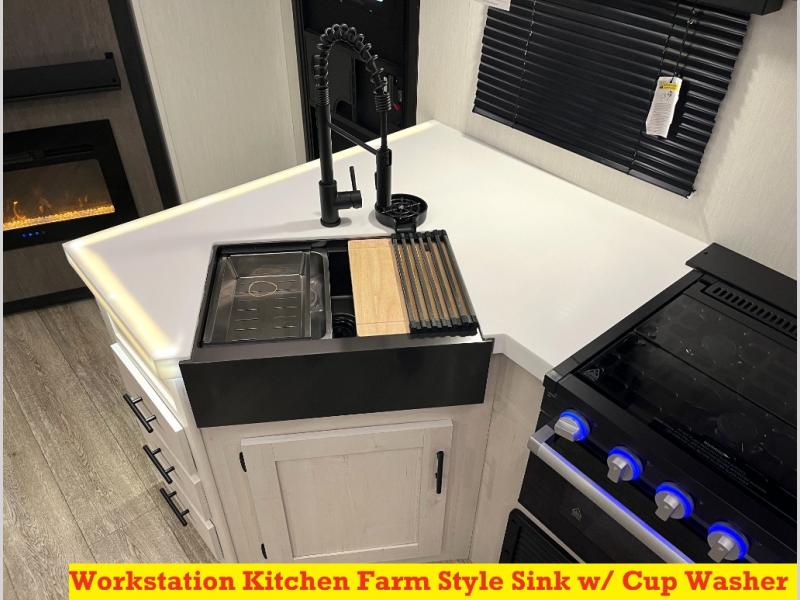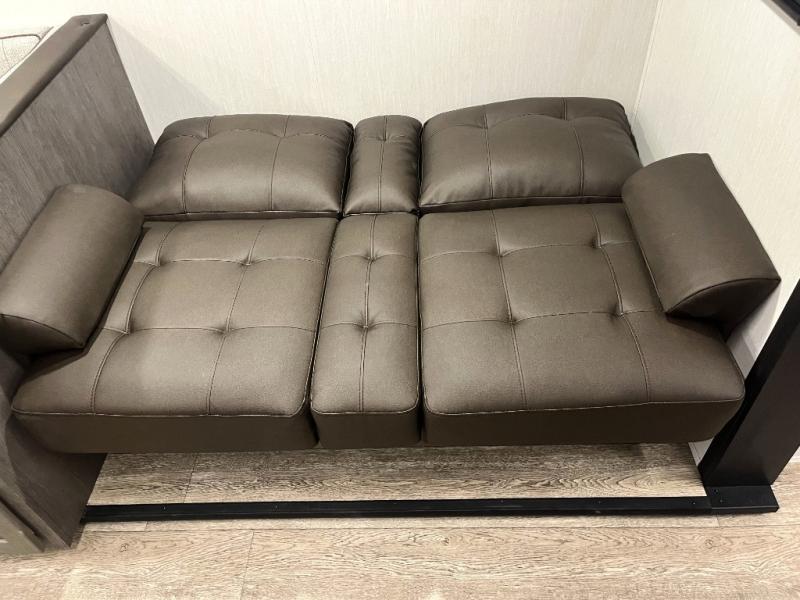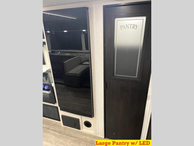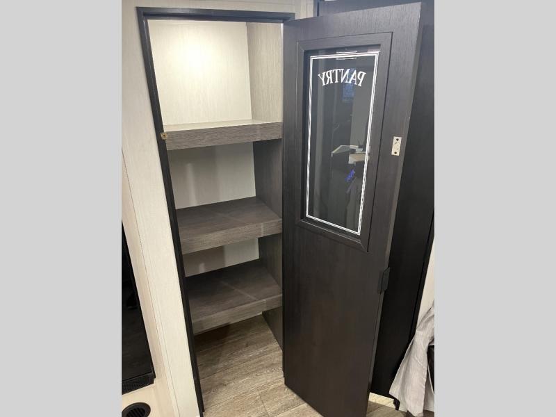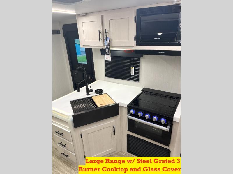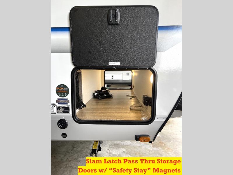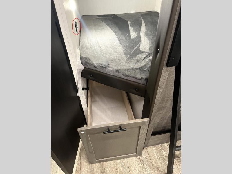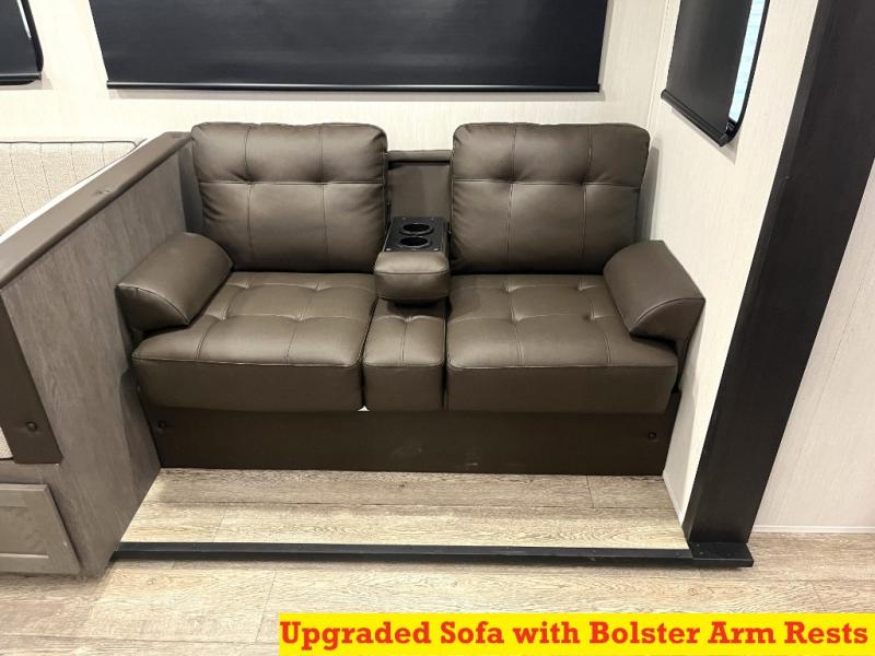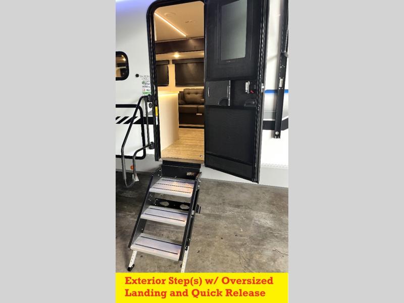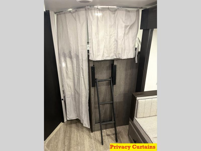 Looking for a multi-sleeper trailer to sleep nine to ten happy campers? You've found it in this dual entry model with an outside kitchen, double-size bunks, and a large slide out! The main living and kitchen area has a U-shaped dinette to utilize as a dining table, game table, work station, and/or an extra sleeping space. You will also find a hidden pantry behind the entertainment center and full kitchen amenities including a large sink and a residential-style refrigerator. The exterior provides a 20' awning for an outdoor living area, outside storage, plus large steps with oversized landing and quick release for convenience. You will also appreciate the Juice Pack that comes with a 100W solar panel, a battery, a 30 AMP solar charger, and more!