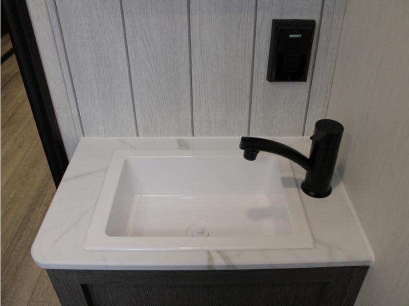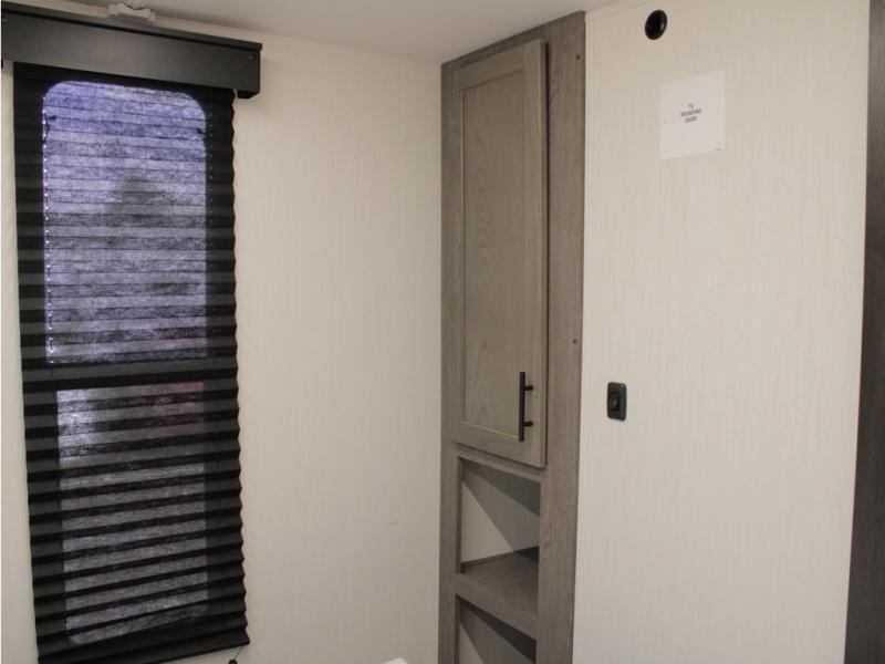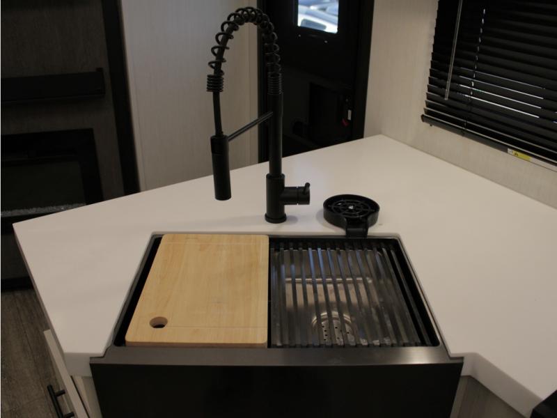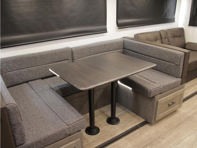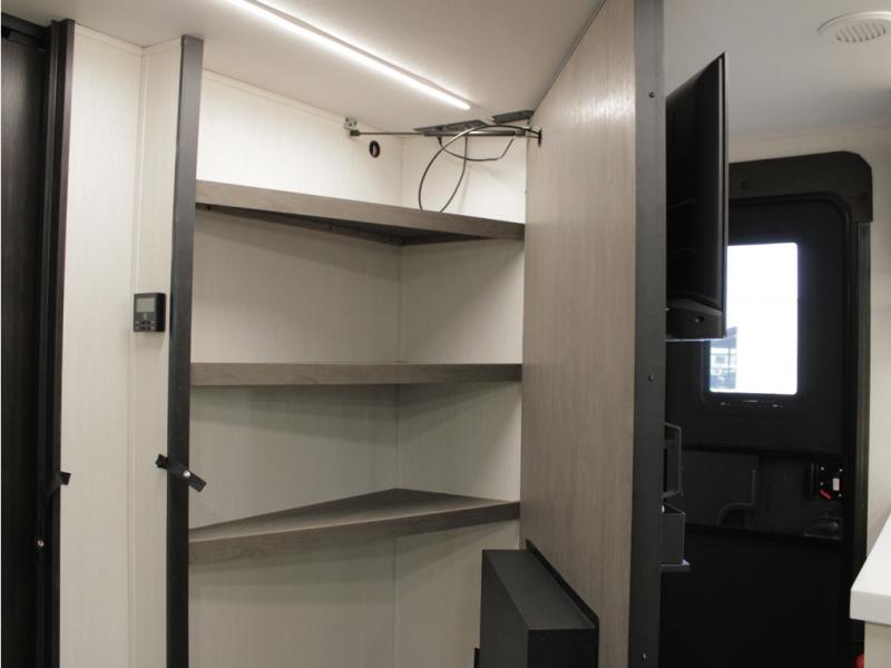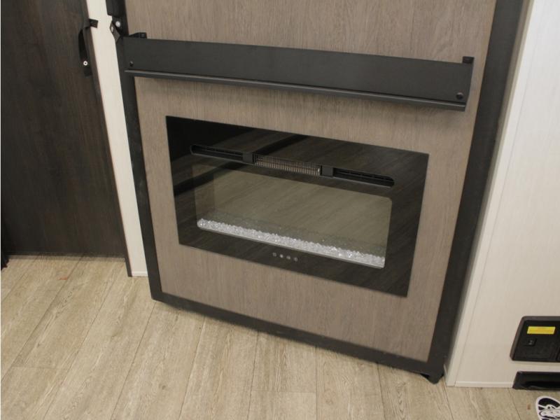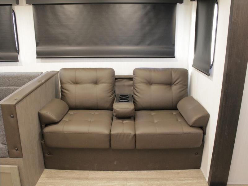 Looking for a multi-sleeper trailer to sleep nine to ten happy campers? You've found it in this dual entry model with an outside kitchen, double-size bunks, and a large slide out! The main living and kitchen area has a U-shaped dinette to utilize as a dining table, game table, work station, and/or an extra sleeping space. You will also find a hidden pantry behind the entertainment center and full kitchen amenities including a large sink and a residential-style refrigerator. The exterior provides a 20' awning for an outdoor living area, outside storage, plus large steps with oversized landing and quick release for convenience. You will also appreciate the Juice Pack that comes with a 100W solar panel, a battery, a 30 AMP solar charger, and more!