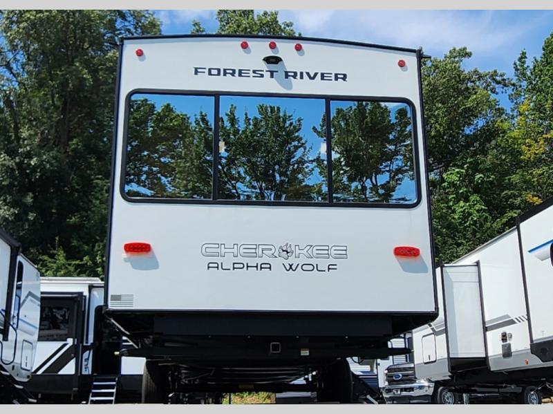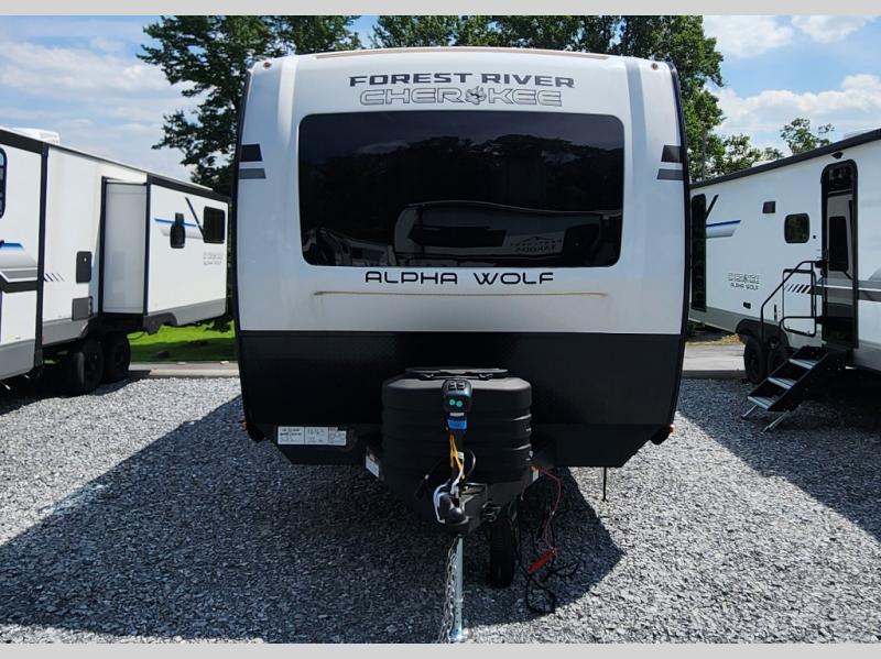 With any Cherokee Alpha Wolf travel trailer by Forest River you'll enjoy outstanding amenities, quality construction, and an affordable price. Each model features a "ToughBend" rigid skirt metal design, 5/8" tongue and groove plywood floor decking, and a "SuperTruss" roof structure that will hold up through years of camping memories. There is a pet friendly "clean sweep" floor design with no heat vents indoors, along with a super lumen lighting system, a 15,000 BTU quick cool central air conditioning, and many more comforts. There are many convenient exterior features such as, Leash Latch pet safety technology, an outside shower with hot and cold water, On The Go rear ladder prep, and exterior steps with oversized landing and quick release. The Weather Guard Package will add protection against the elements with an armored underbelly tank enclosure and forced air heat, thermo-control reflective safety glass windows, and upgraded laminated walls with block foam insulation!