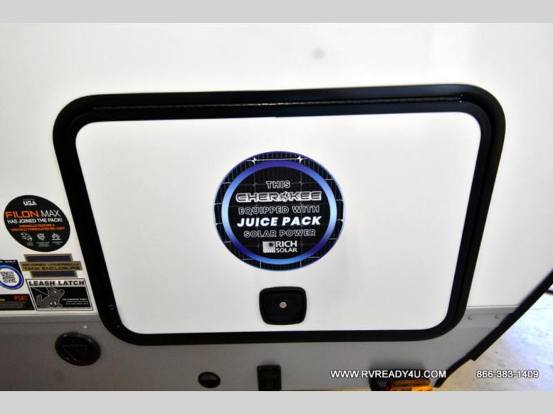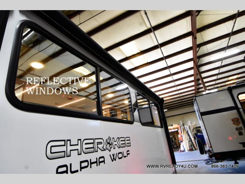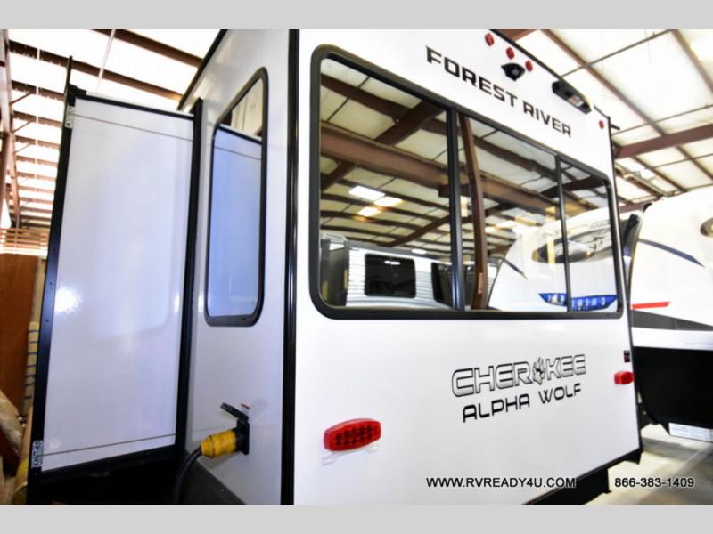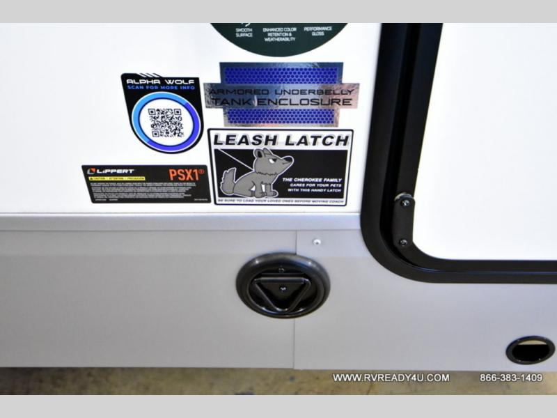 With any Cherokee Alpha Wolf travel trailer by Forest River you'll enjoy outstanding amenities, quality construction, and an affordable price. Each model features a "ToughBend" rigid skirt metal design, 5/8" tongue and groove plywood floor decking, and a "SuperTruss" roof structure that will hold up through years of camping memories. There is a pet friendly "clean sweep" floor design with no heat vents indoors, along with a super lumen lighting system, a 15,000 BTU quick cool central air conditioning, and many more comforts. There are many convenient exterior features such as, Leash Latch pet safety technology, an outside shower with hot and cold water, On The Go rear ladder prep, and exterior steps with oversized landing and quick release. The Weather Guard Package will add protection against the elements with an armored underbelly tank enclosure and forced air heat, thermo-control reflective safety glass windows, and upgraded laminated walls with block foam insulation!