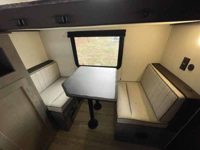 Looking for a spacious travel trailer to sleep nine or ten happy campers? You've found it in this Cherokee Alpha Wolf model with a handy outside kitchen, a bunkhouse with a dinette, a front private bedroom, and a large slide out! The main living and kitchen area has a U-shaped dinette to utilize as a dining table, game table, work station, and/or an extra sleeping space. There is also a jackknife sofa for seating, TV watching, or sleeping. From any seating area you can easily view the entertainment center and fireplace which is centered in the unit with doors on either side to the front private bedroom. You will also find a nice pantry and full kitchen amenities including a large sink, and residential-style refrigerator allowing you to easily create meals for your hungry crew. The exterior provides an 18' awning for an outdoor living area over the outside kitchen, and there is ample exterior storage for all of your camping gear like camp chairs, outside games, rugs, and more.