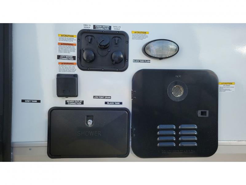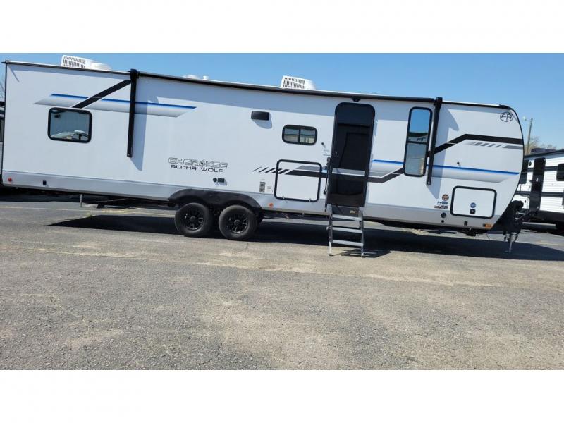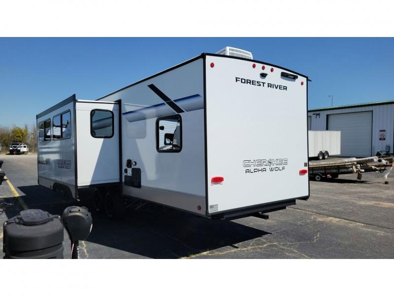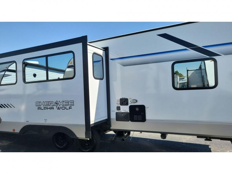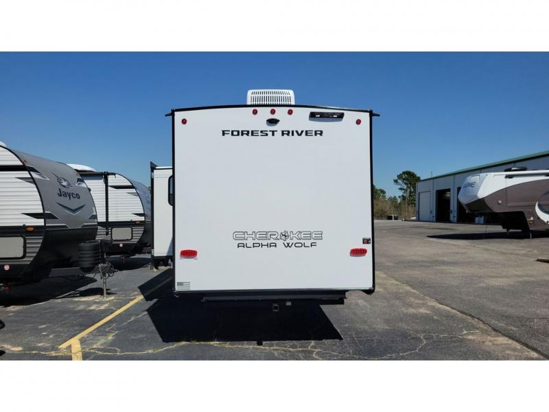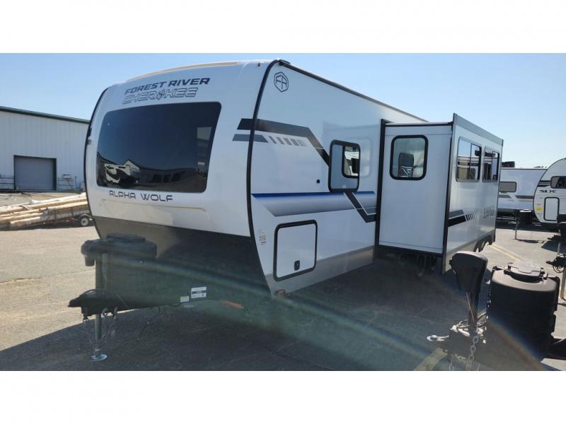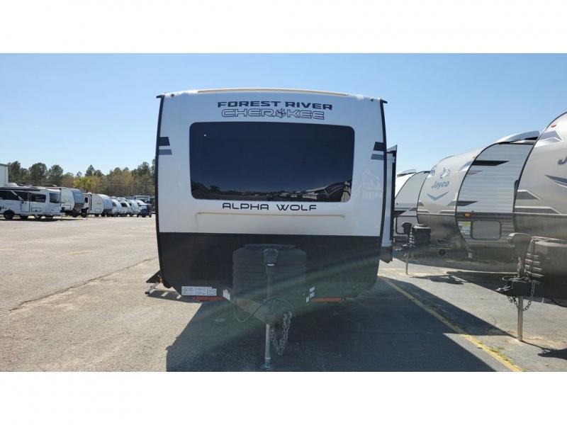 With any Cherokee Alpha Wolf travel trailer by Forest River you'll enjoy outstanding amenities, quality construction, and an affordable price. Each model features a "ToughBend" rigid skirt metal design, 5/8" tongue and groove plywood floor decking, and a "SuperTruss" roof structure that will hold up through years of camping memories. There is a pet friendly "clean sweep" floor design with no heat vents indoors, along with a super lumen lighting system, a 15,000 BTU quick cool central air conditioning, and many more comforts. There are many convenient exterior features such as, Leash Latch pet safety technology, an outside shower with hot and cold water, On The Go rear ladder prep, and exterior steps with oversized landing and quick release. The Weather Guard Package will add protection against the elements with an armored underbelly tank enclosure and forced air heat, thermo-control reflective safety glass windows, and upgraded laminated walls with block foam insulation!