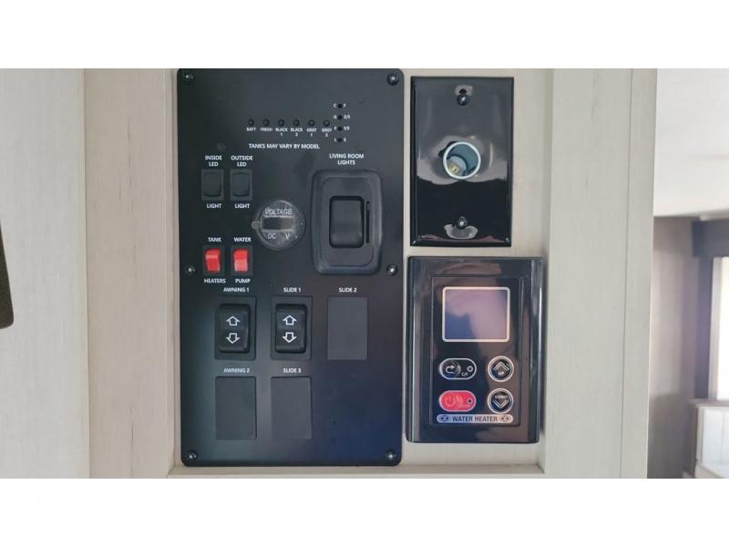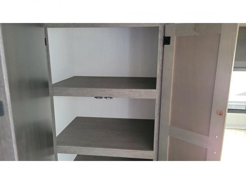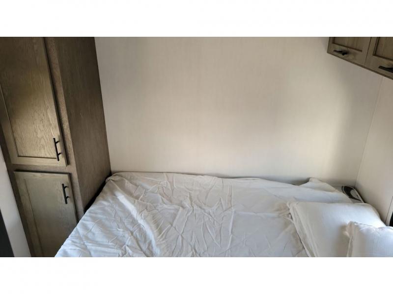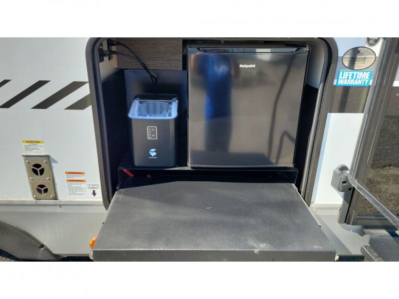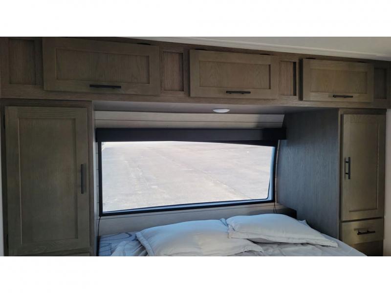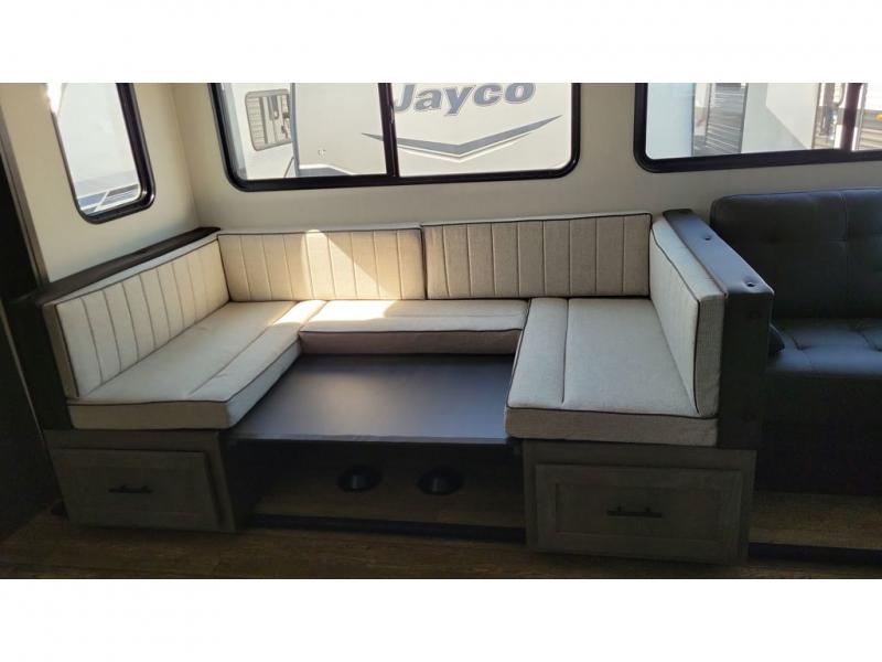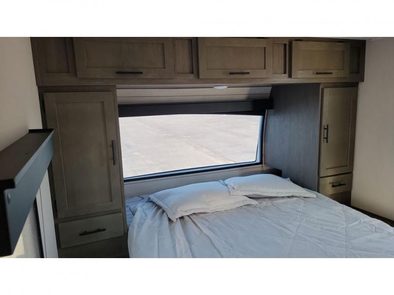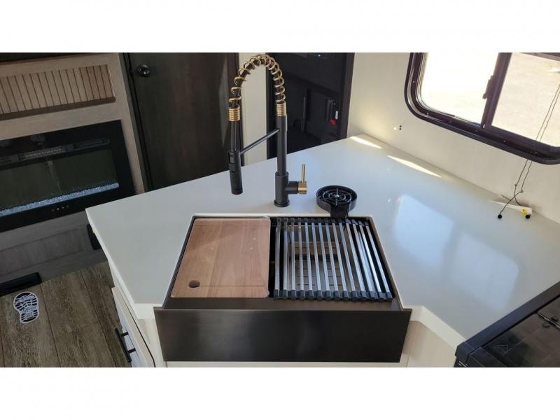Looking for a spacious travel trailer to sleep nine or ten happy campers? You've found it in this Cherokee Alpha Wolf model with a handy outside kitchen, a bunkhouse with a dinette, a front private bedroom, and a large slide out! The main living and kitchen area has a U-shaped dinette to utilize as a dining table, game table, work station, and/or an extra sleeping space. There is also a jackknife sofa for seating, TV watching, or sleeping. From any seating area you can easily view the entertainment center and fireplace which is centered in the unit with doors on either side to the front private bedroom. You will also find a nice pantry and full kitchen amenities including a large sink, and residential-style refrigerator allowing you to easily create meals for your hungry crew. The exterior provides an 18' awning for an outdoor living area over the outside kitchen, and there is ample exterior storage for all of your camping gear like camp chairs, outside games, rugs, and more.