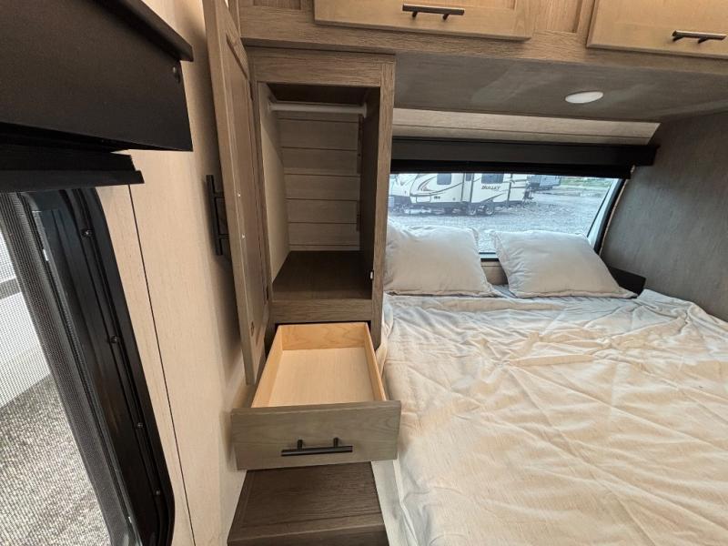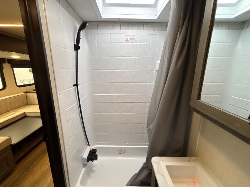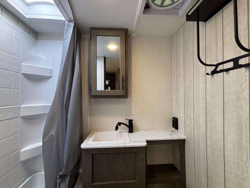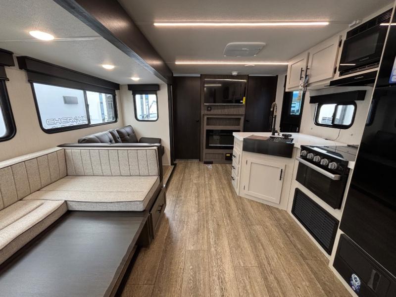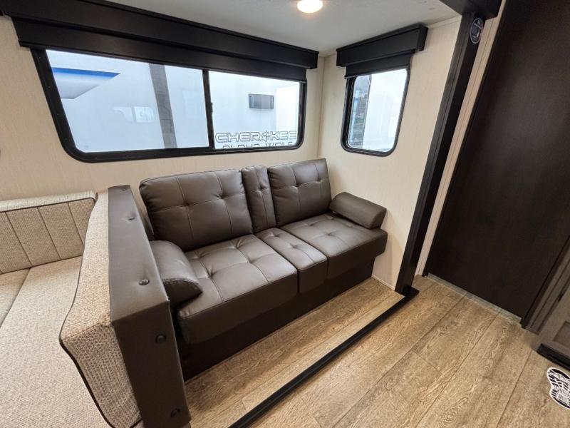 With any Cherokee Alpha Wolf travel trailer by Forest River you'll enjoy outstanding amenities, quality construction, and an affordable price. Each model features a "ToughBend" rigid skirt metal design, 5/8" tongue and groove plywood floor decking, and a "SuperTruss" roof structure that will hold up through years of camping memories. There is a pet friendly "clean sweep" floor design with no heat vents indoors, along with a super lumen lighting system, a 15,000 BTU quick cool central air conditioning, and many more comforts. There are many convenient exterior features such as, Leash Latch pet safety technology, an outside shower with hot and cold water, On The Go rear ladder prep, and exterior steps with oversized landing and quick release. The Weather Guard Package will add protection against the elements with an armored underbelly tank enclosure and forced air heat, thermo-control reflective safety glass windows, and upgraded laminated walls with block foam insulation!