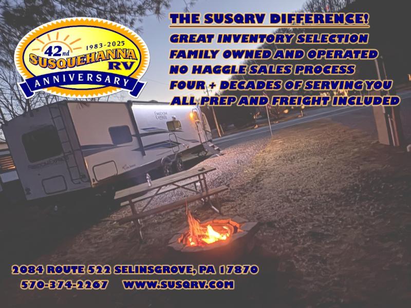 We are a premier dealer for all camping needs. If you are traveling from anywhere in Pennsylvania we have you covered. We service York, Harrisburg, Lancaster, Reading, Lewisburg, Williamsport, Philadelphia, Pittsburgh, State College, Lewistown, Bloomsburg, Allentown, Scranton, Wilkes-Barre, Lebanon, Manheim, Duncannon, Shamokin Dam, Elysburg, Danville, Sunbury, Berwick, Mt. Carmel, Hershey, Pottsville, Frackville, Centralia, Wiles -Barre, Scranton, Long Pond, and more. In New Jersey, Delaware, West Virginia, New York, or the Maryland regions; we are the RV dealer to see. Please browse our huge RV inventory today at WWW.SUSQRV.COM. Susquehanna RV has been an industry leader for 42 years. We have a wide variety of new and pre-owned Travel Trailers, Fifth 5th Wheels, Toy Haulers, Class A class C motorhomes & more. We stock Cherokee, Cherokee Wolf Pup, Wolf Pack, Arctic Wolf Alpha Wolf, Cardinal by Forest River, Coachmen Prism and Cross Trail. Full service & repair shop with RVIA Certified Technicians and Financing is available. We have an excellent reputation in the Recreational Vehicle and Camping industry with our customers and manufacturers. Call us 570-374-2267 2084 Route 522 Selinsgrove, Pa 17870