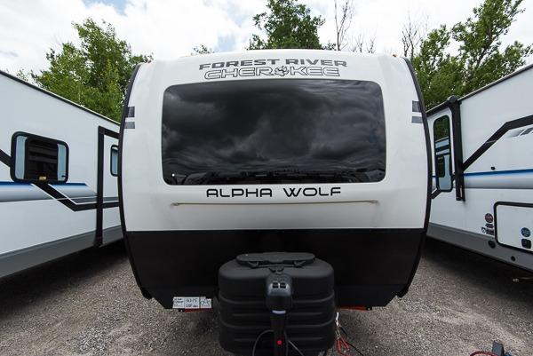 With any Cherokee Alpha Wolf travel trailer by Forest River you'll enjoy outstanding amenities, quality construction, and an affordable price. Each model features a "ToughBend" rigid skirt metal design, 5/8" tongue and groove plywood floor decking, and a "SuperTruss" roof structure that will hold up through years of camping memories. There is a pet friendly "clean sweep" floor design with no heat vents indoors, along with a super lumen lighting system, a 15,000 BTU quick cool central air conditioning, and many more comforts. There are many convenient exterior features such as, Leash Latch pet safety technology, an outside shower with hot and cold water, On The Go rear ladder prep, and exterior steps with oversized landing and quick release. The Weather Guard Package will add protection against the elements with an armored underbelly tank enclosure and forced air heat, thermo-control reflective safety glass windows, and upgraded laminated walls with block foam insulation!
